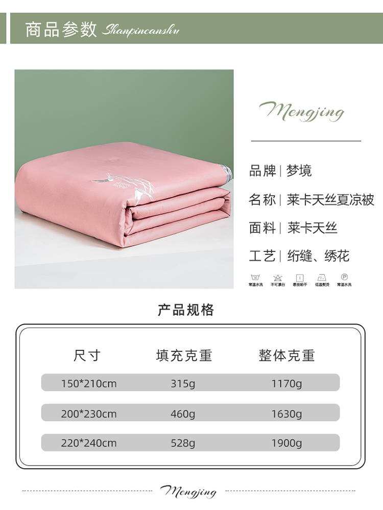 商品名称:梦镜 2025新款莱卡天丝夏被母婴级夏凉被 珊瑚红