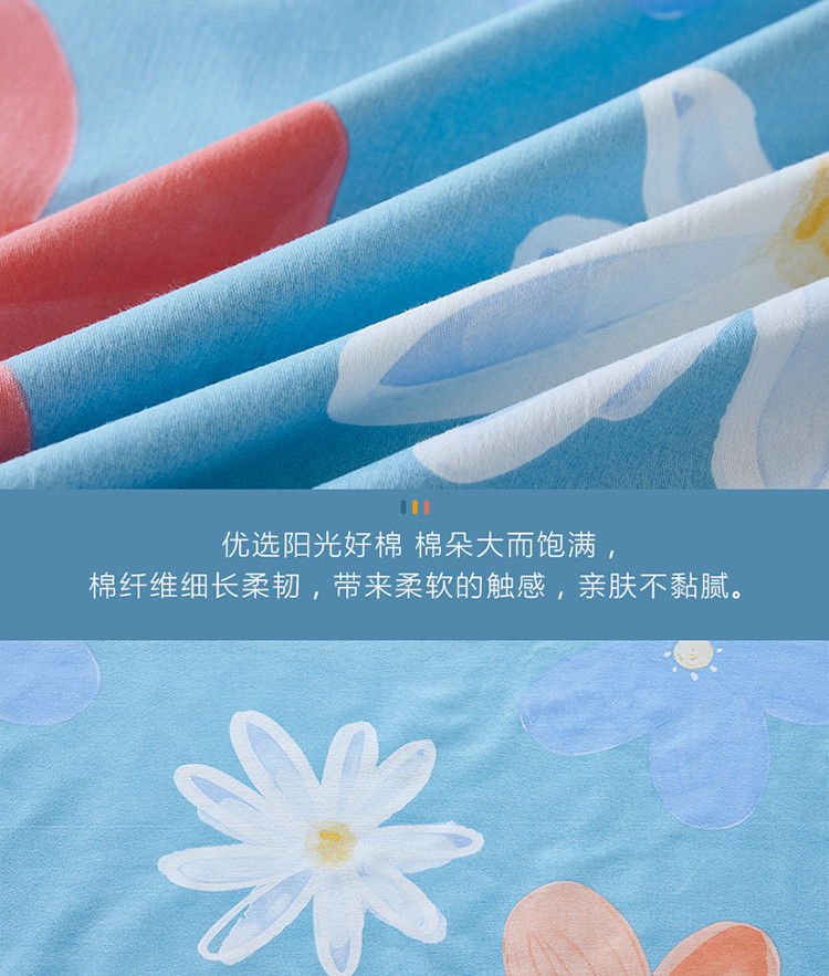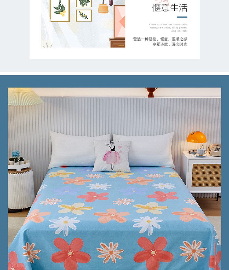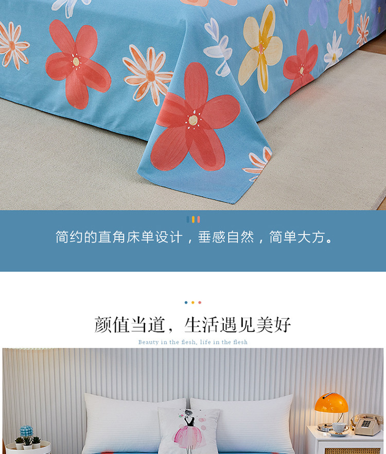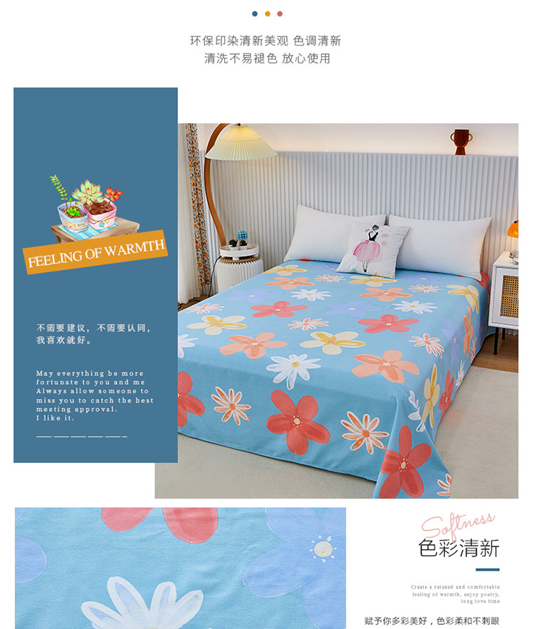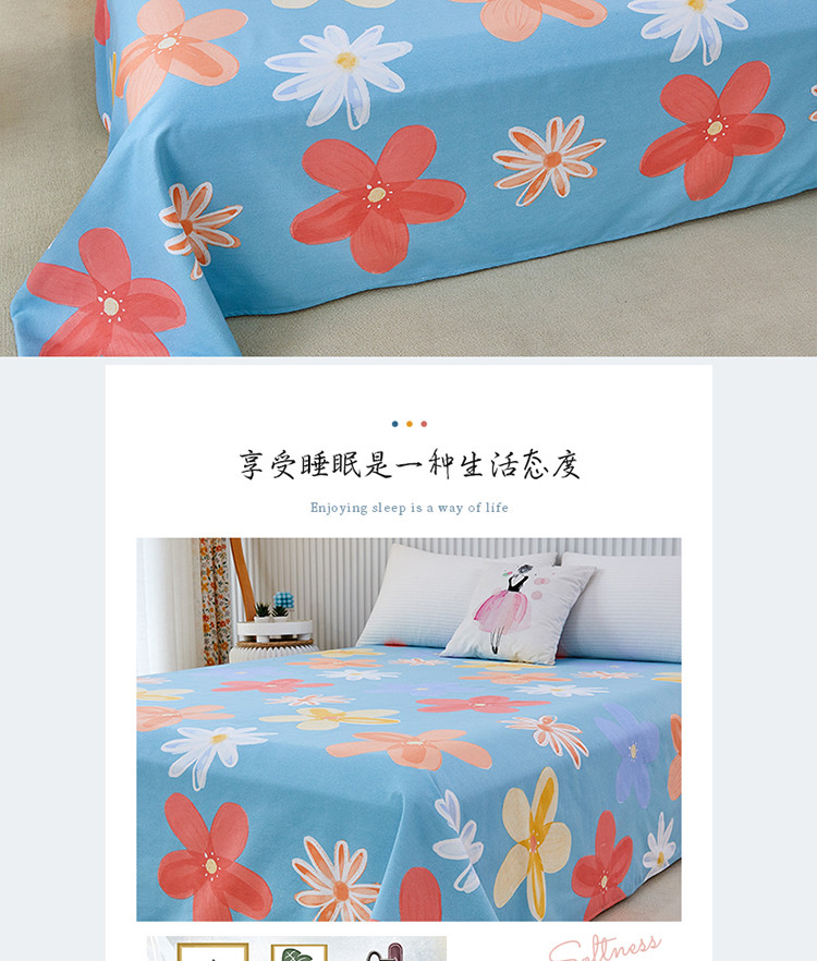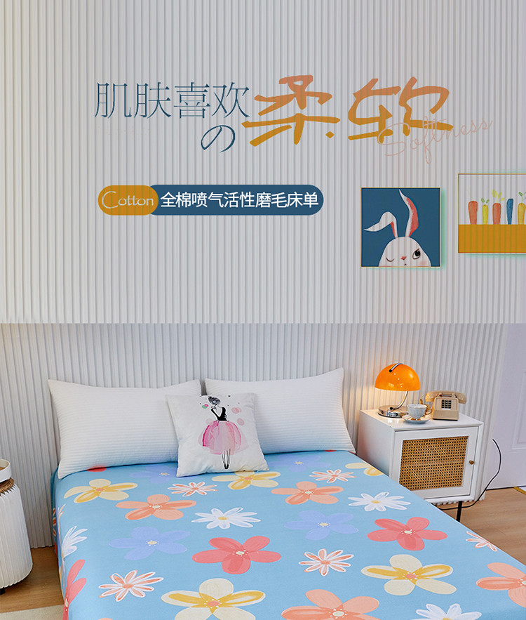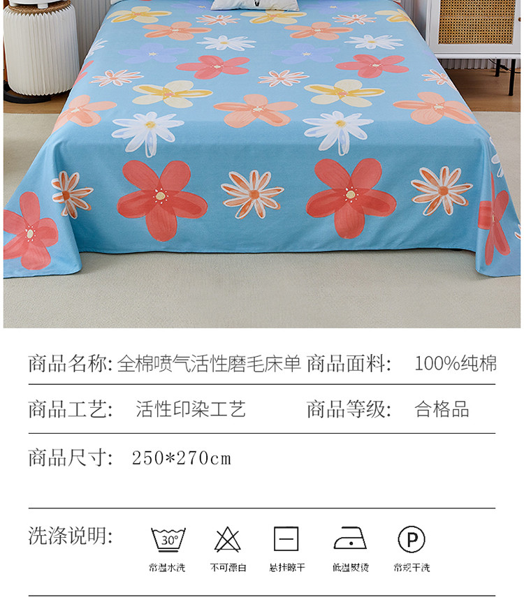 商品名称:杜先生 2023新款全棉加厚喷气活性磨毛直角床单 花语时光-蓝