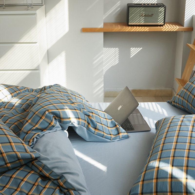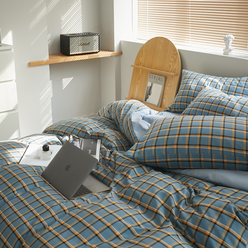 仟网汇 2022新款休闲款色织水洗棉四件套 罗亚-兰灰