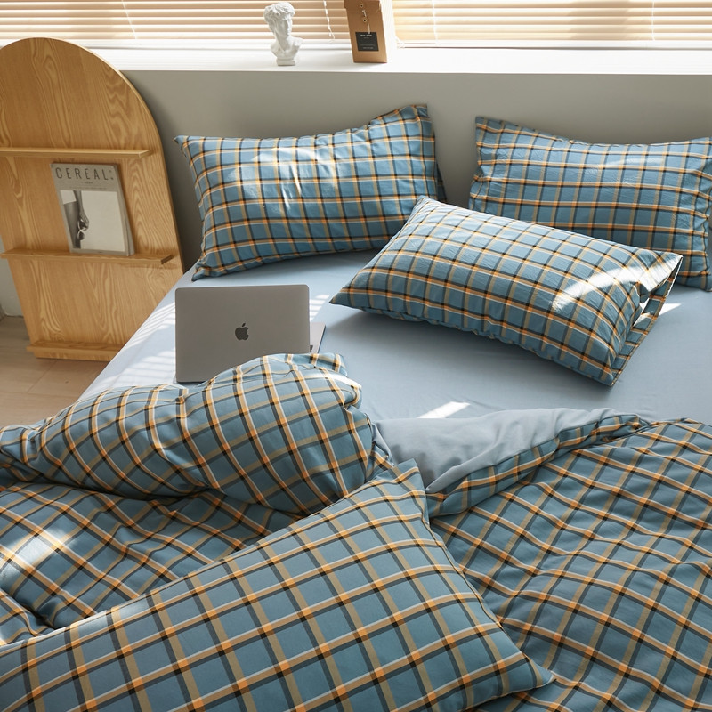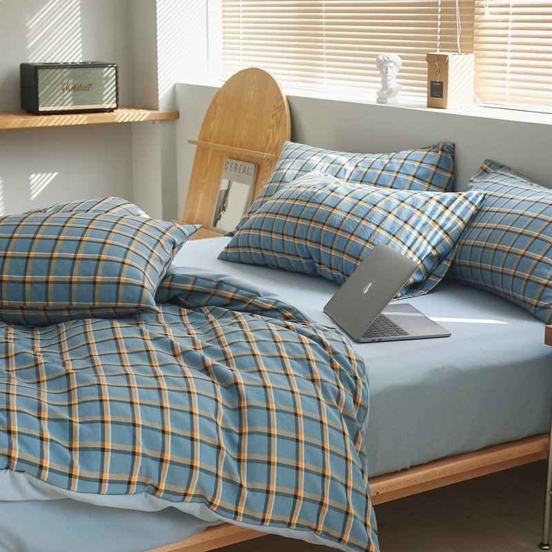 商品名称:仟网汇 2022新款休闲款色织水洗棉四件套 罗亚-兰灰