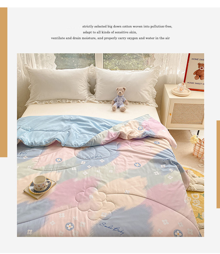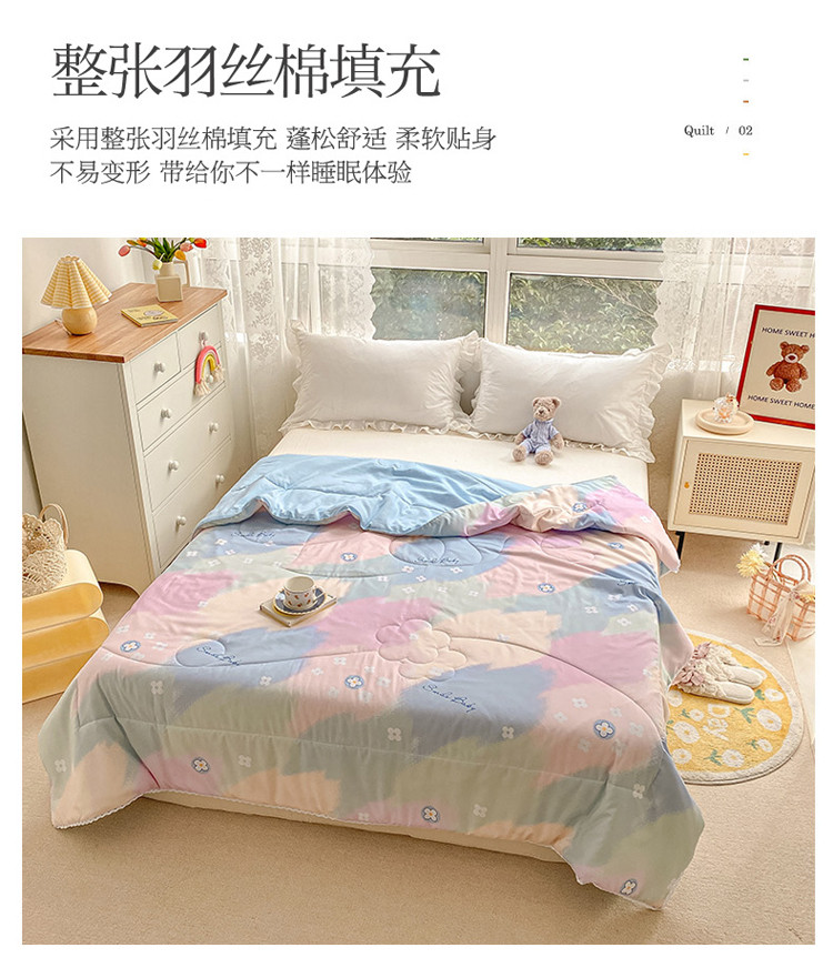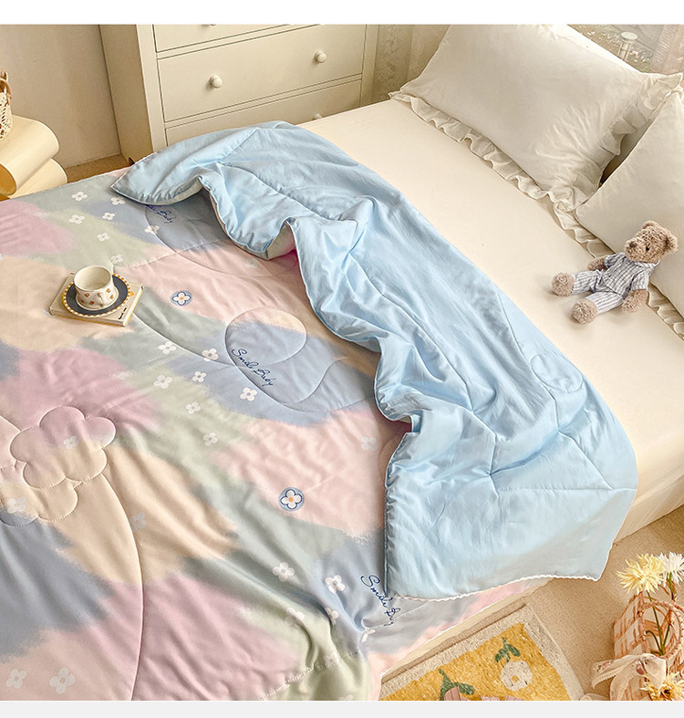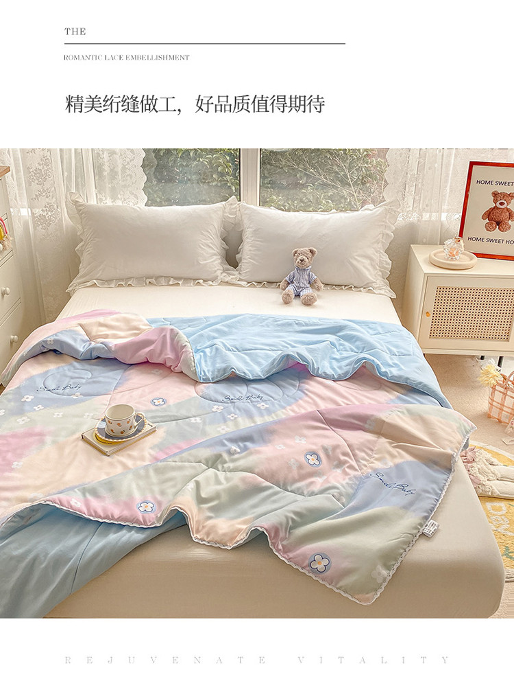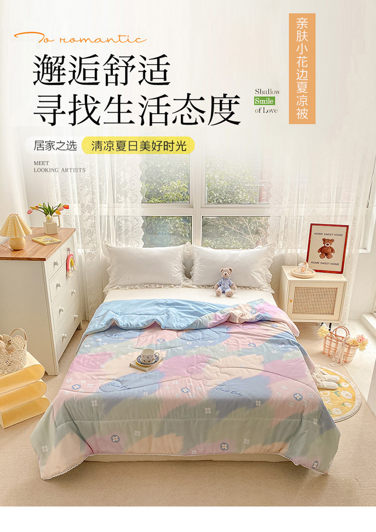 寐居家纺 2022新款水洗棉小花边单夏被 五彩缤纷