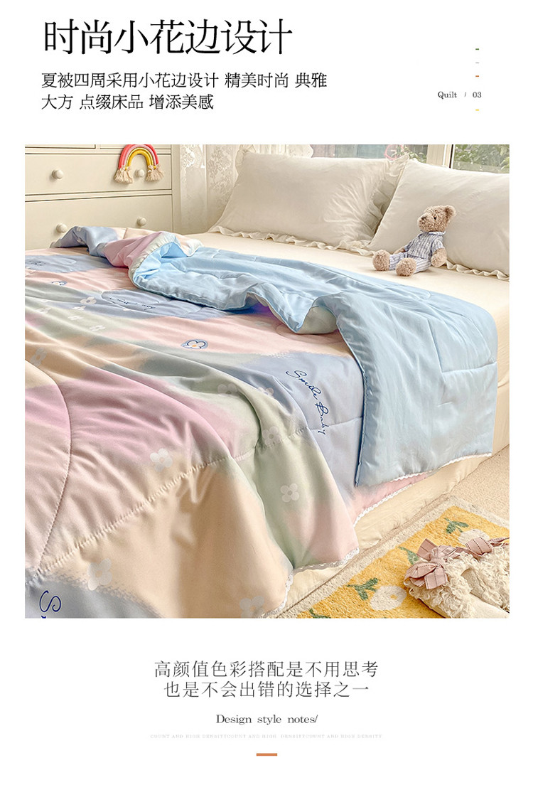 商品名称:寐居家纺 2022新款水洗棉小花边单夏被 五彩缤纷