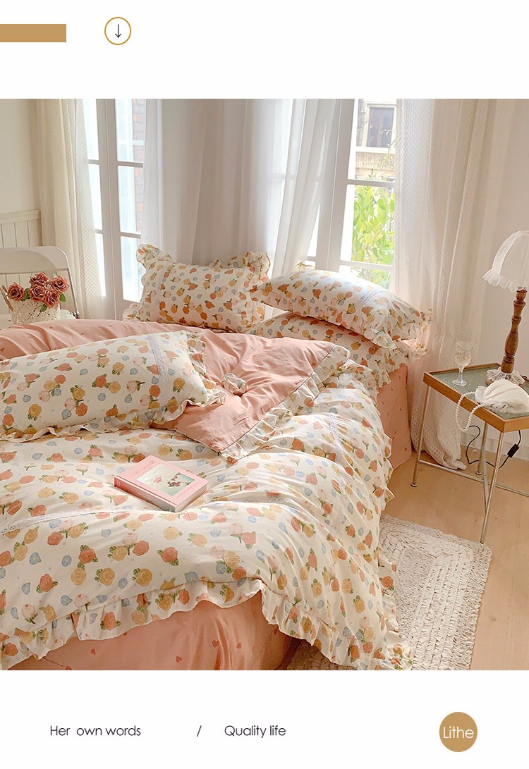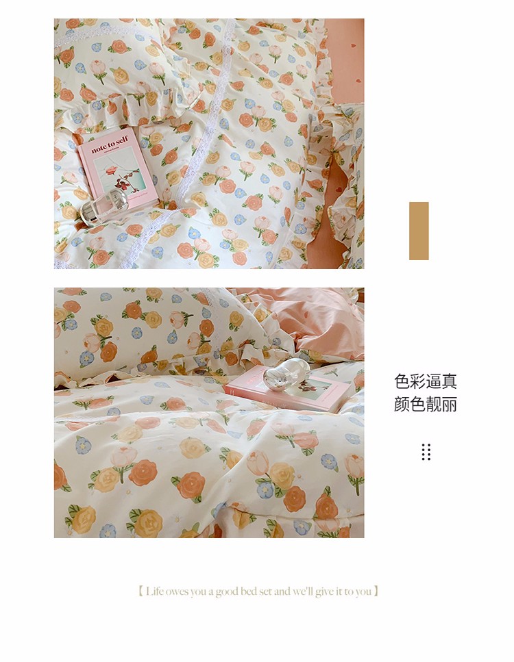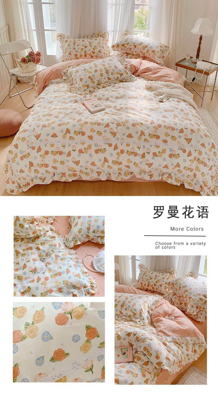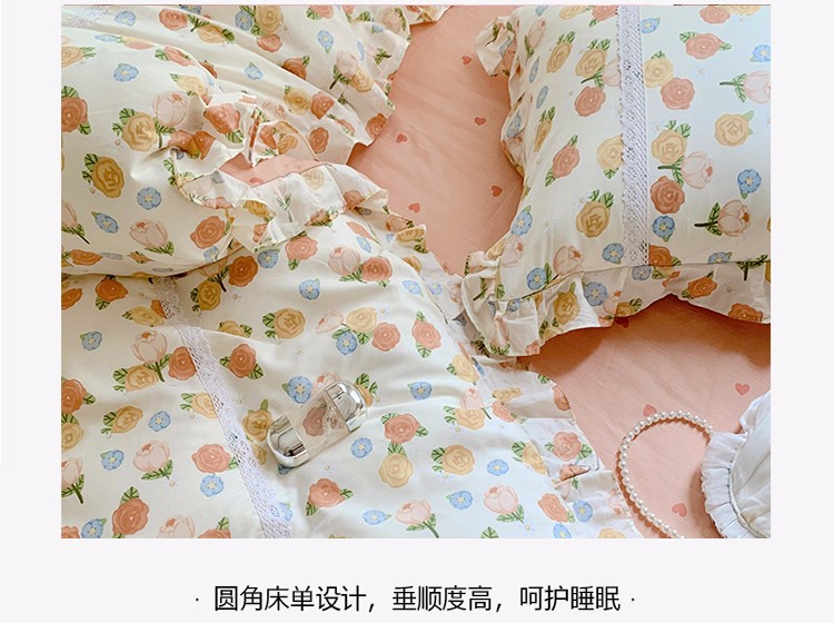 眠屿 2022新款全棉小碎花法式花边四件套 罗曼花语