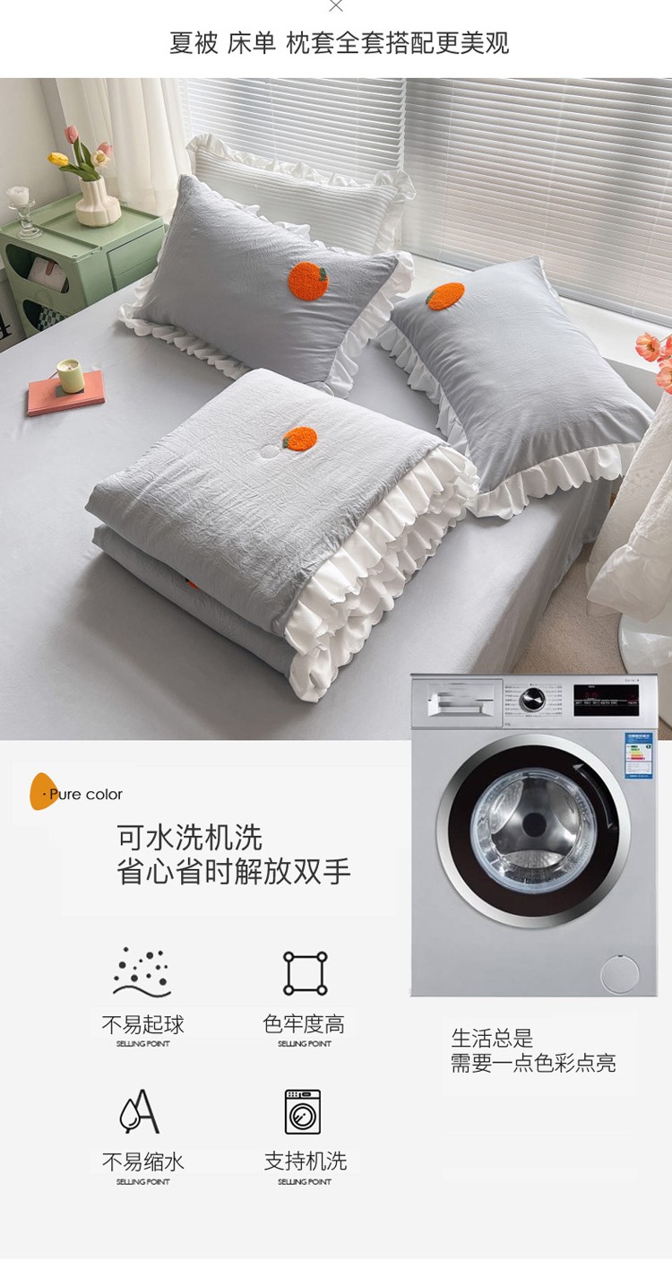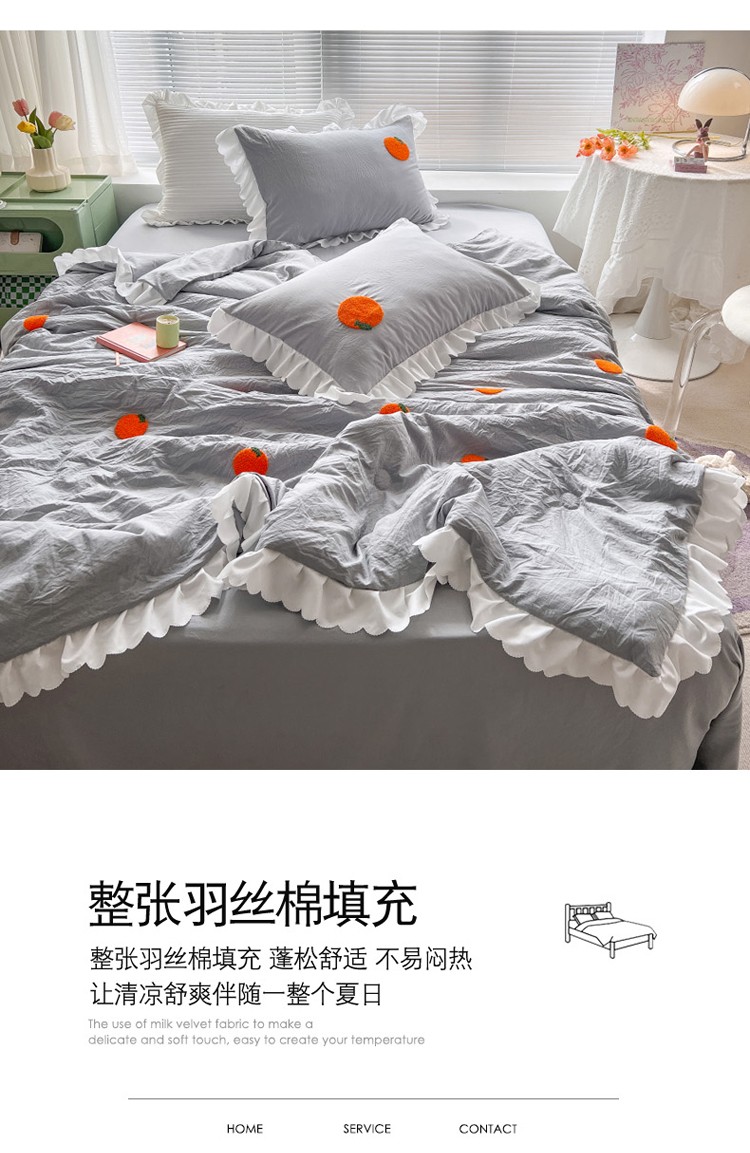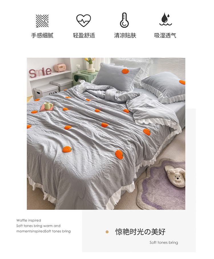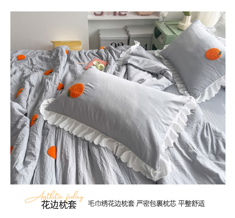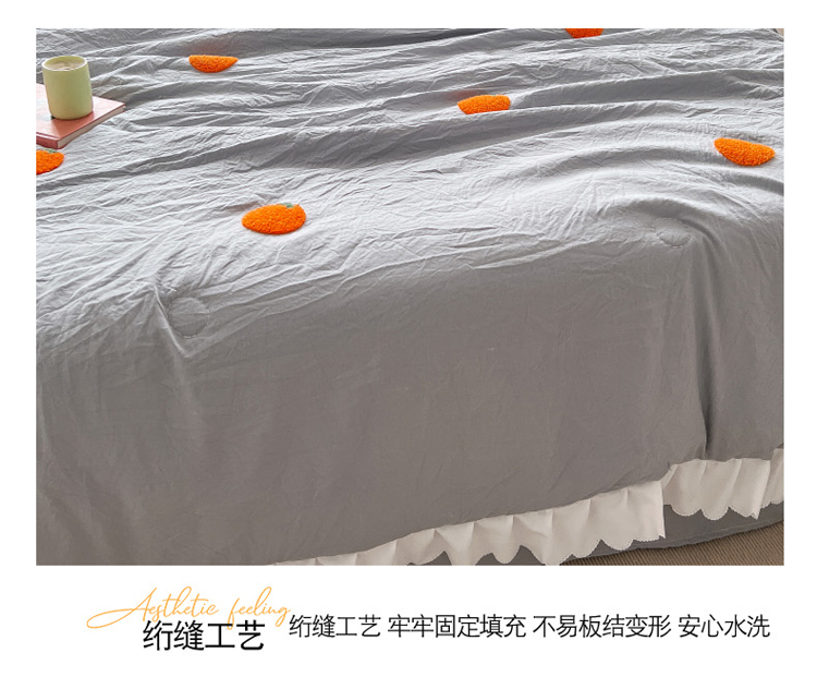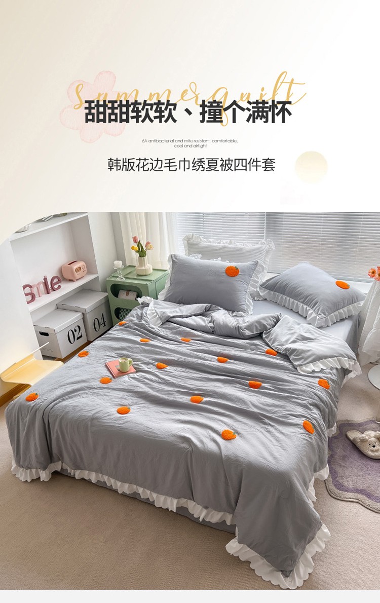 商品名称:沐慕 2022新款毛巾绣洛卡棉夏被四件套 橘子-灰色