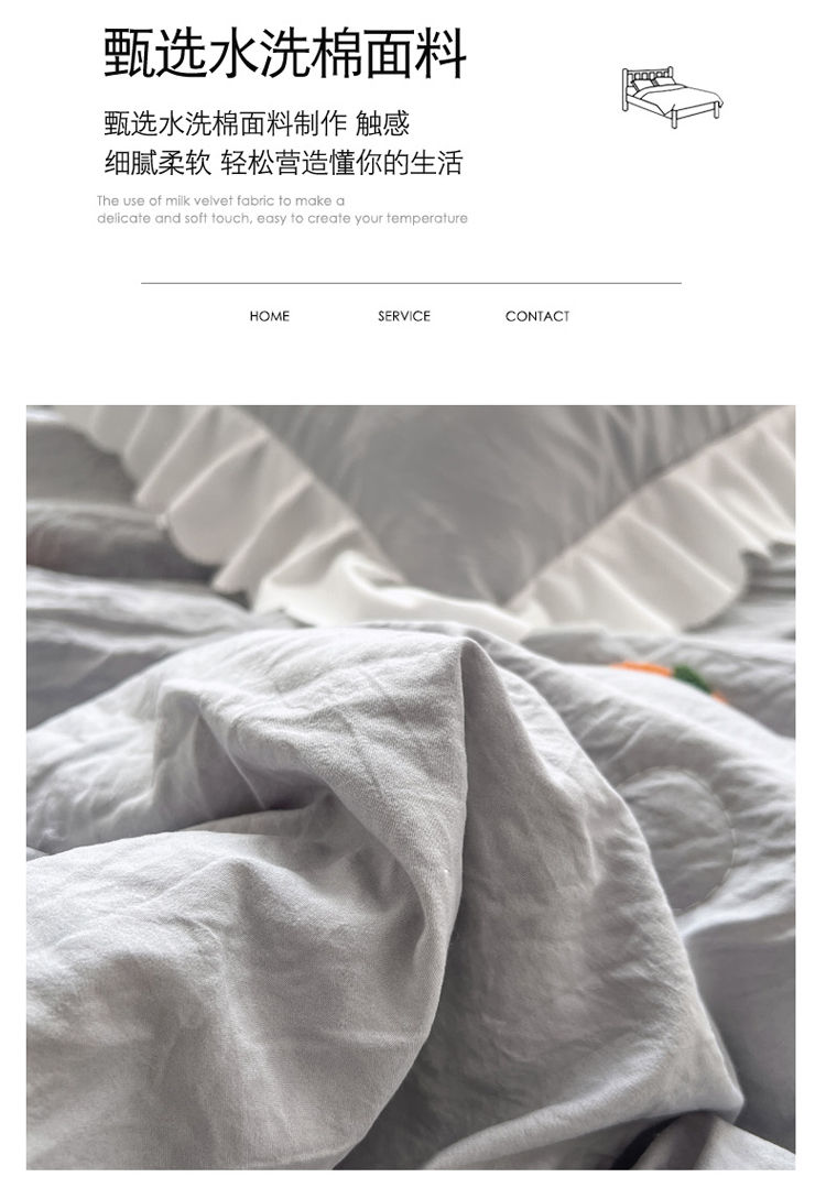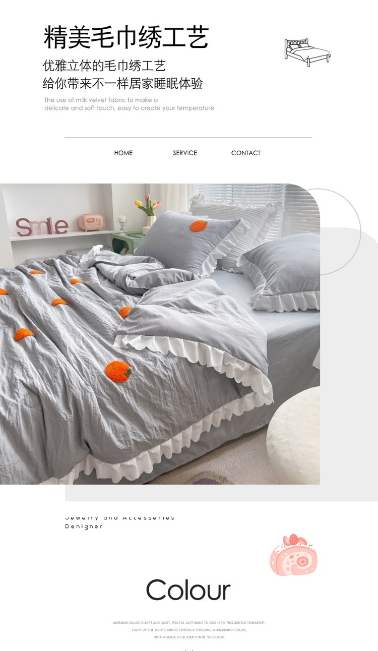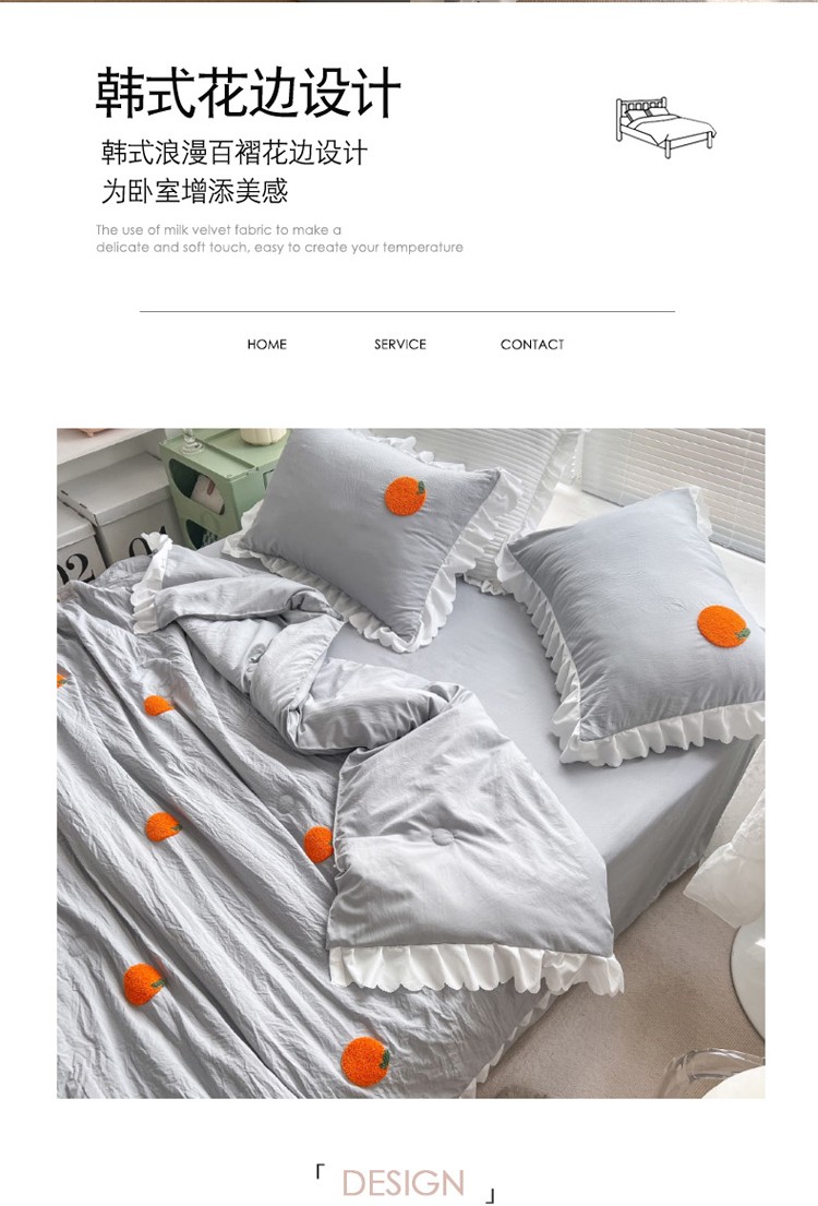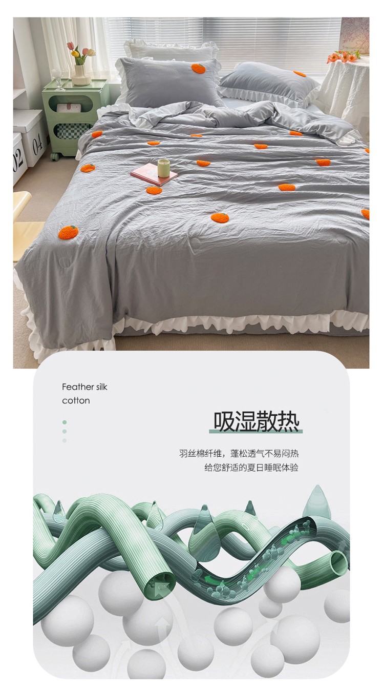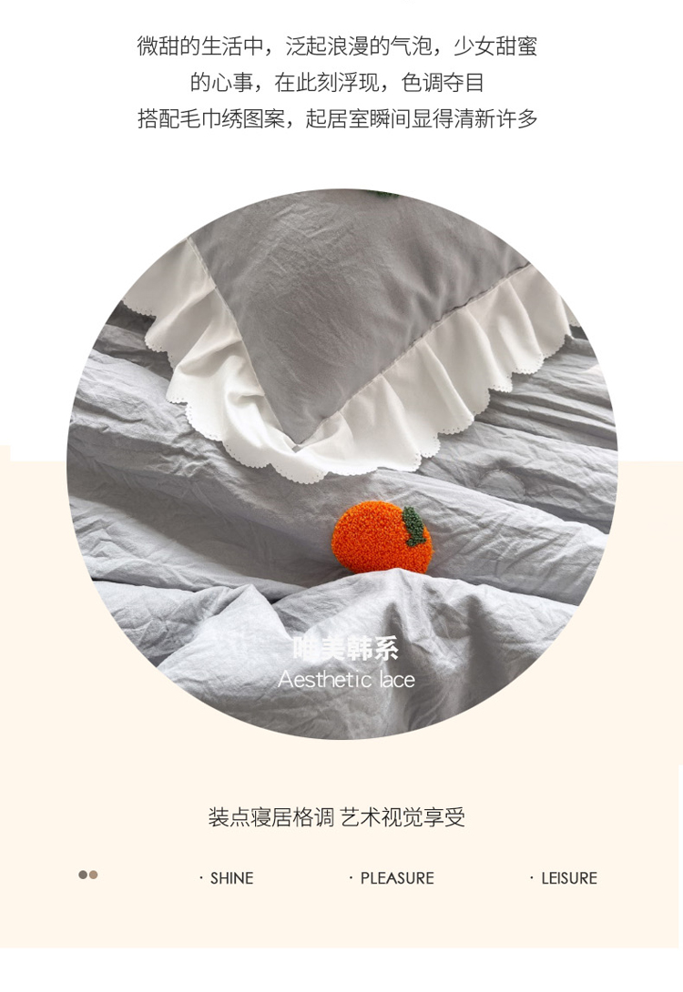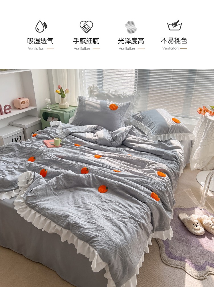 商品名称:沐慕 2022新款毛巾绣洛卡棉夏被四件套 橘子-灰色