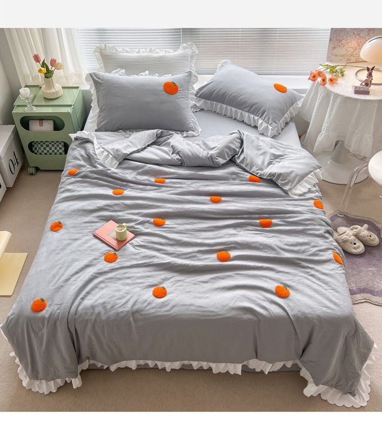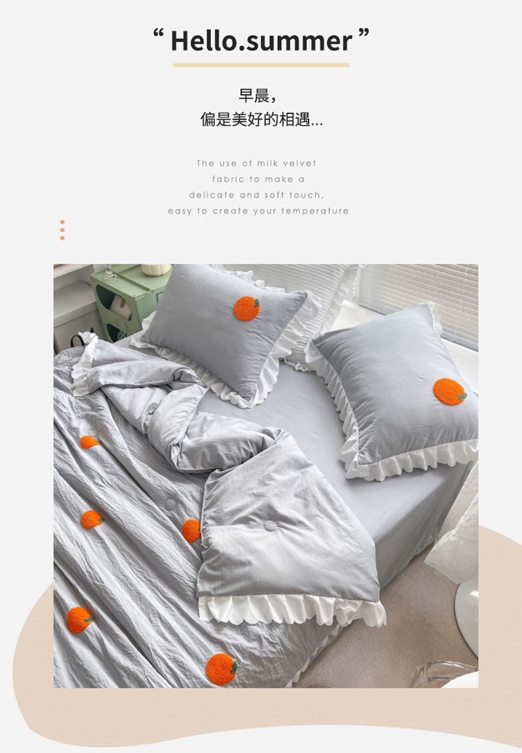 沐慕 2022新款毛巾绣洛卡棉夏被四件套 橘子-灰色