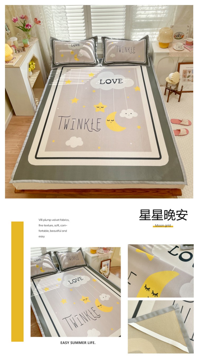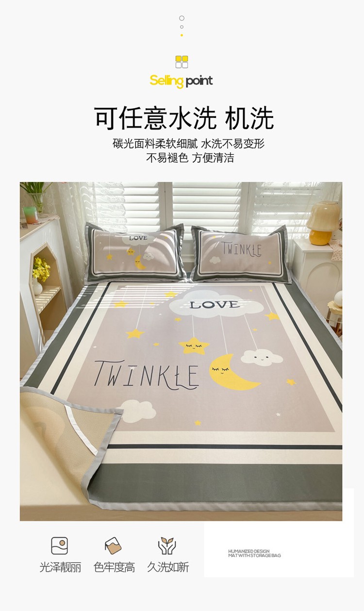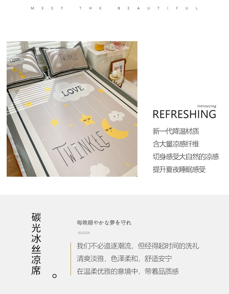 商品名称:柒月家居2022大版碳光冰丝凉席 星星晚安