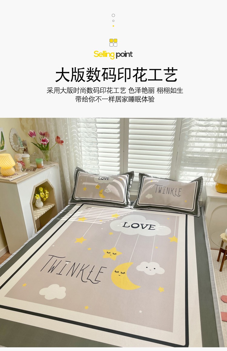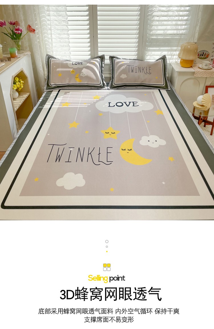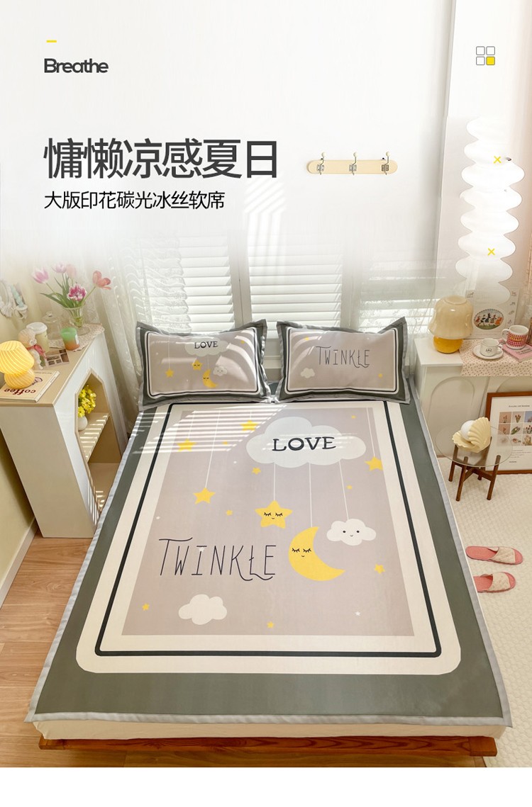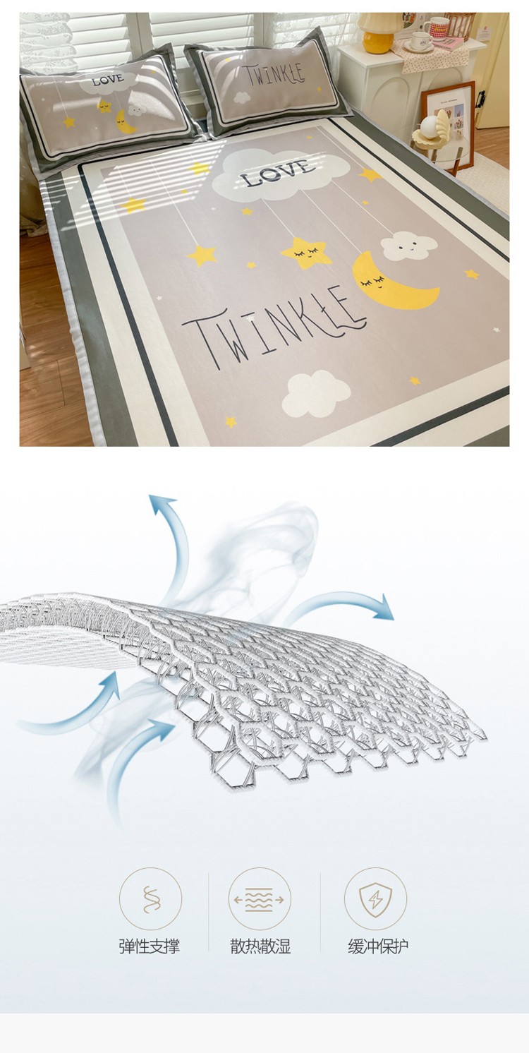 柒月家居2022大版碳光冰丝凉席 星星晚安
