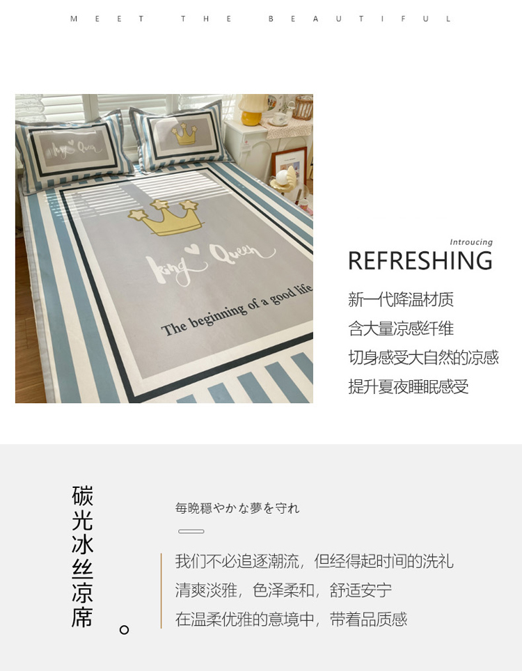 商品名称:柒月家居2022大版碳光冰丝凉席 皇冠