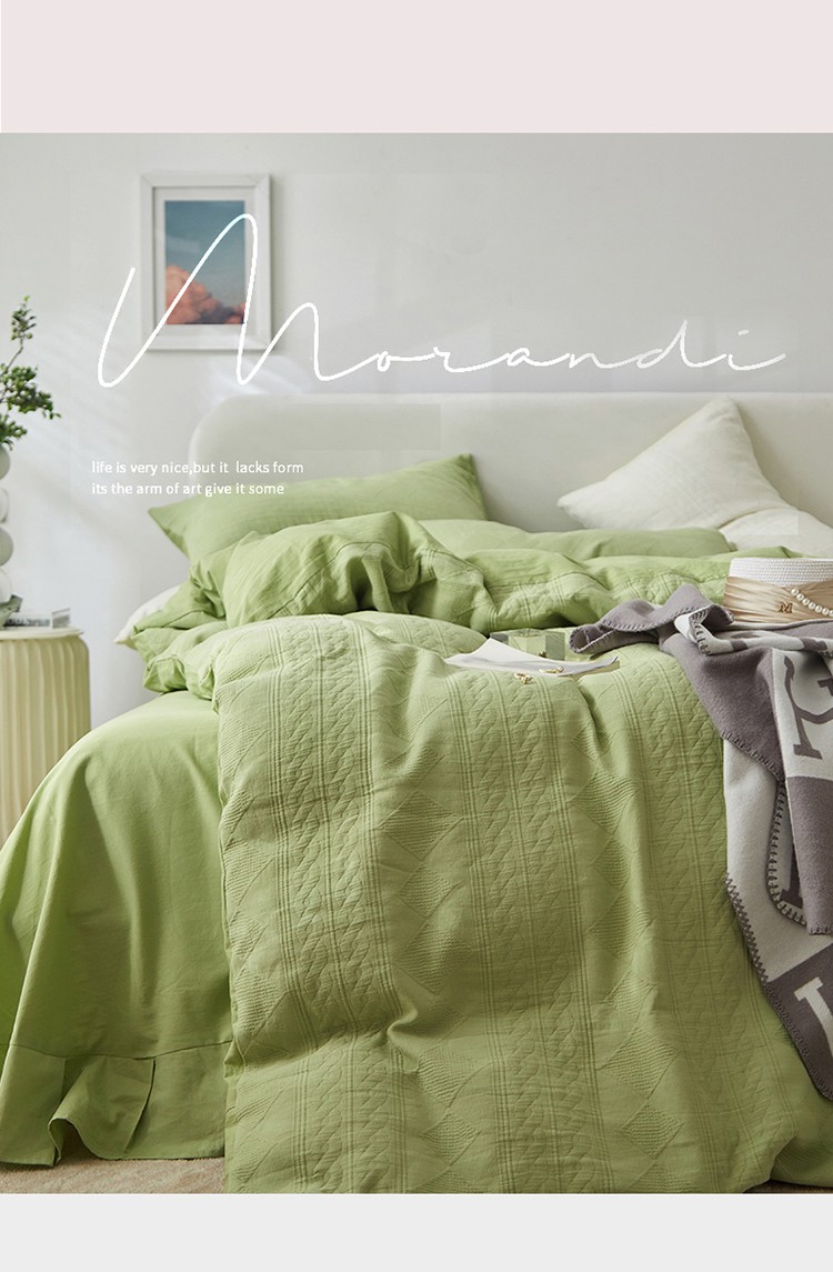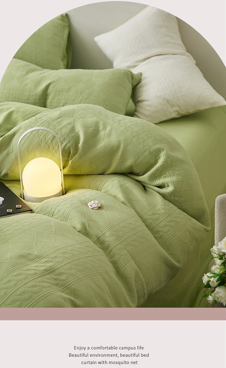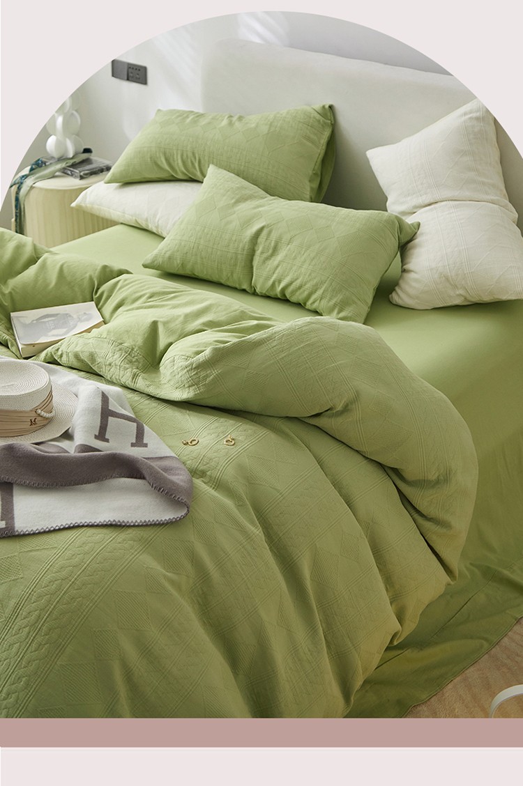 名品优仓 2023新款纯棉水洗棉三层纱提花四件套 狡花绿