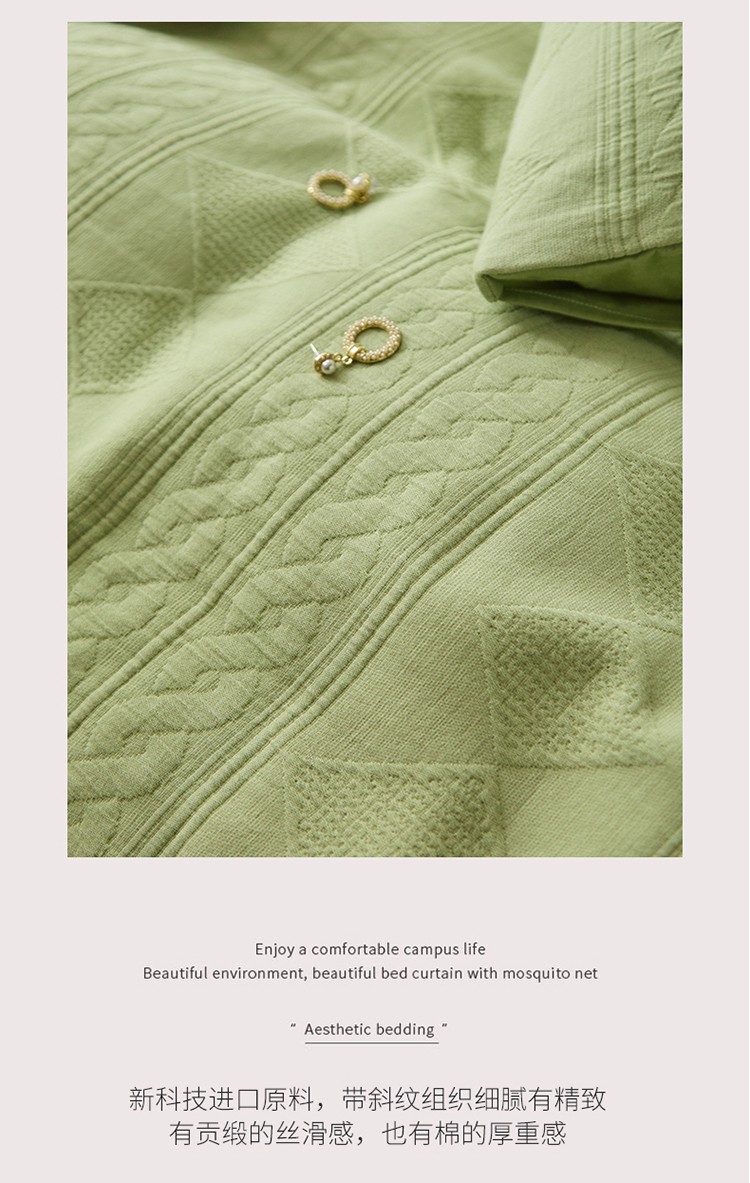 商品名称:名品优仓 2023新款纯棉水洗棉三层纱提花四件套 狡花绿