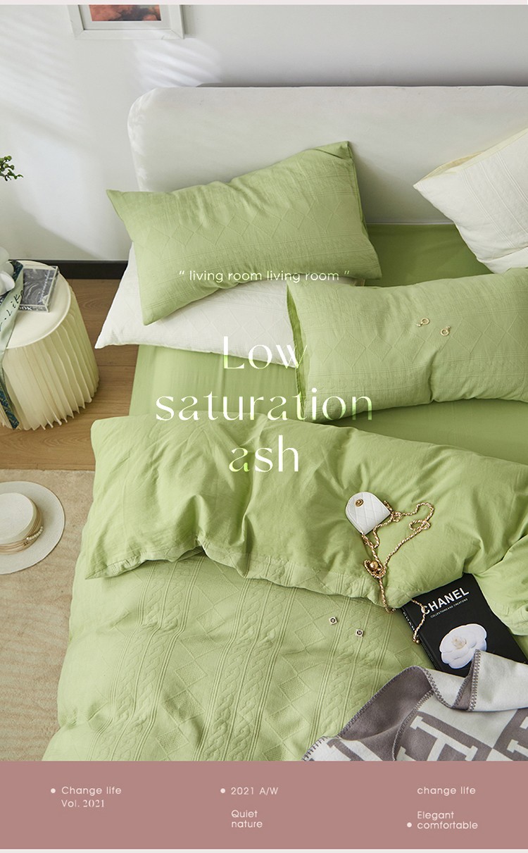 (总)名品优仓2023款水洗棉三层纱提花四件套-狡花系列,狡花白,狡花豆粉,狡花黄,狡花蓝色,狡花绿,狡花少女粉