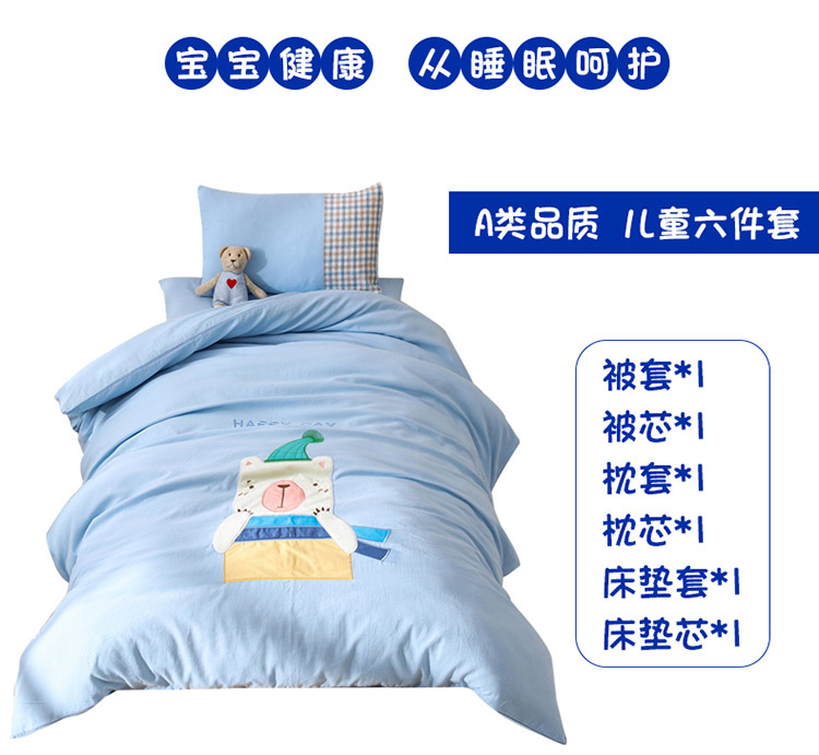 (总)喜多兔儿童家纺 2025新款小美好13372纯棉绣花幼儿园被子三件套多件套,组合图仅供展示,粉色美好小猫咪,粉色美好小兔子,黄色美好卡皮巴拉,黄色美好小狮子,蓝色美好独角兽,蓝色美好小熊,绿色美好小恐龙,绿色美好小青蛙
