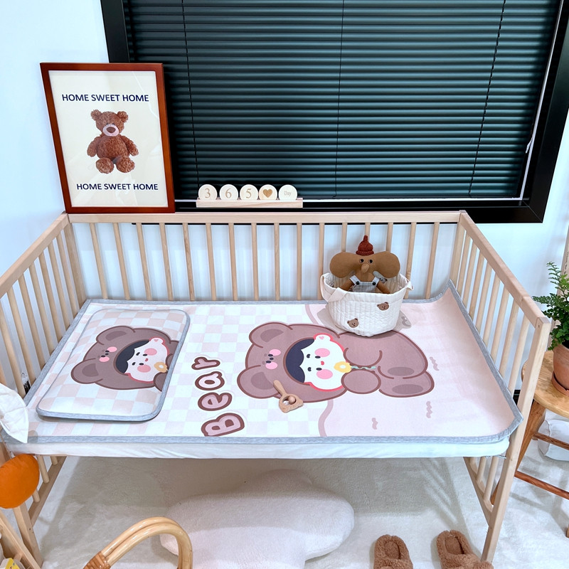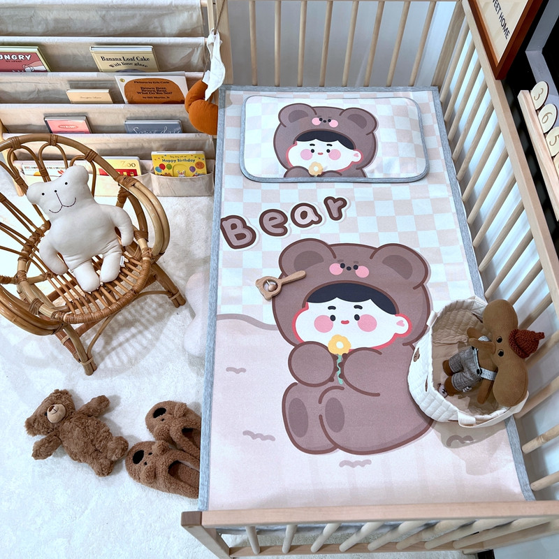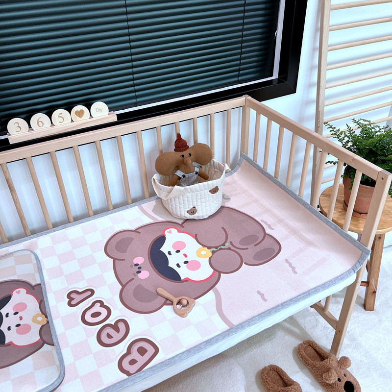 (总)橘滋 2025夏日新款高端A类原创设计婴儿童趣卡通数码印花冰丝席凉席-床席床笠,大眼熊仔,叠叠乐园,蝴蝶结兔兔,欢乐曲奇,木马小熊,太空冒险,熊猫胖达