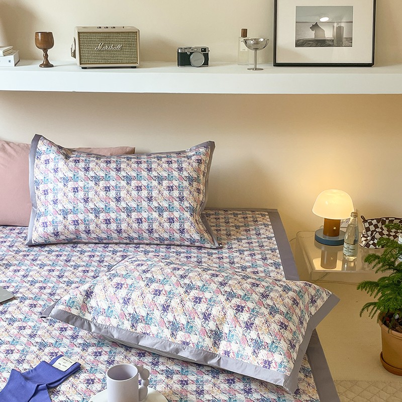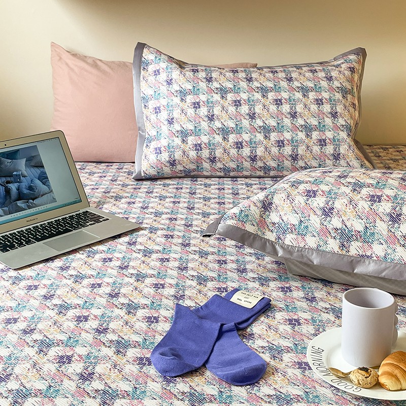 (总)昔可 2023新款全棉ins格子混搭系列四件套,ins简约绿格,粉蓝格,开心果格,学院格纹,粉绿格,海盐兰格,黄绿格,夏日蓝条,芝士黄条,紫芋泥芝士格