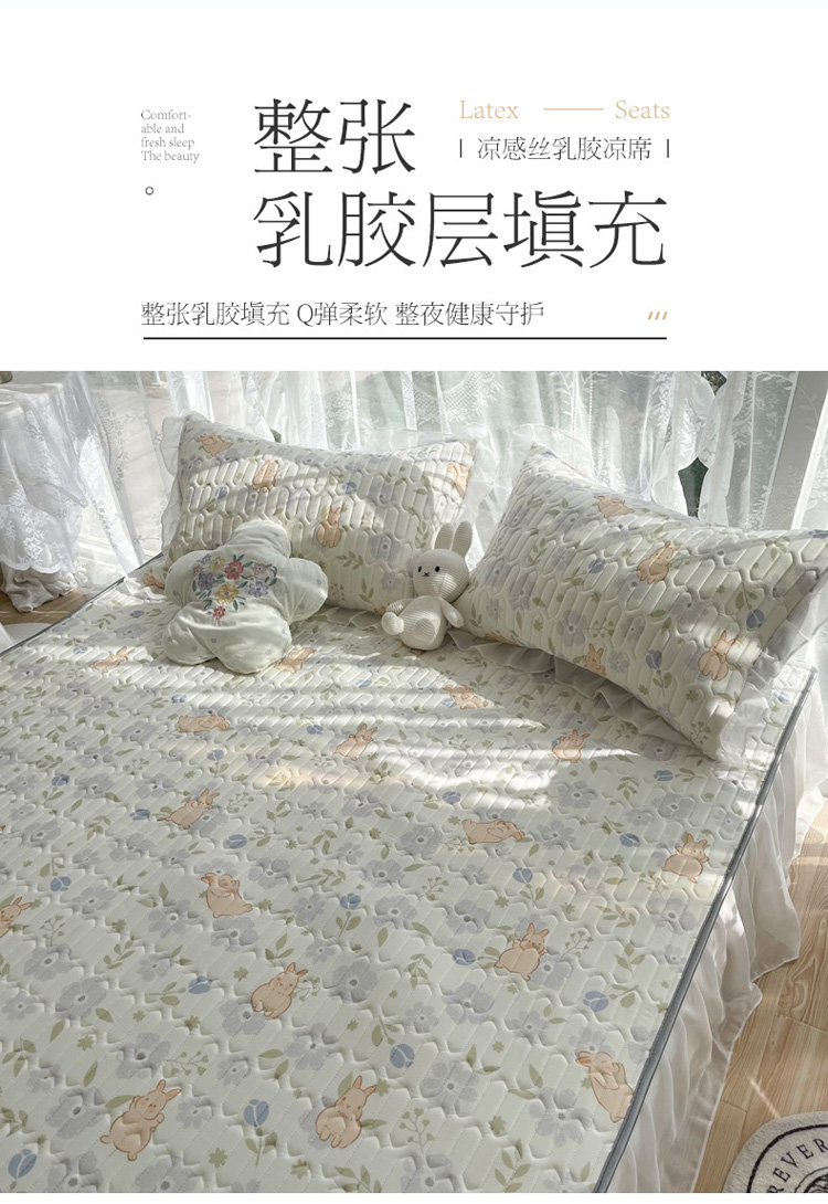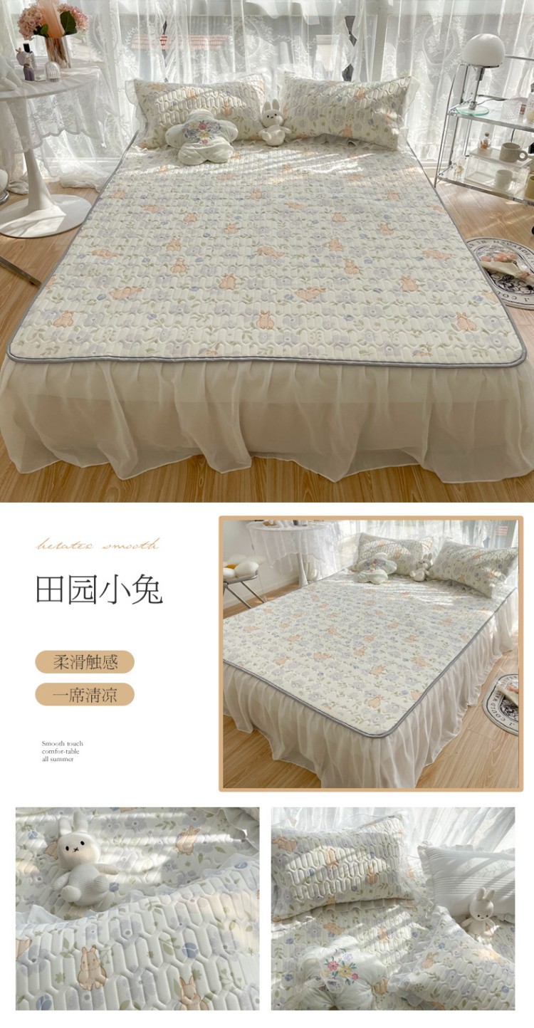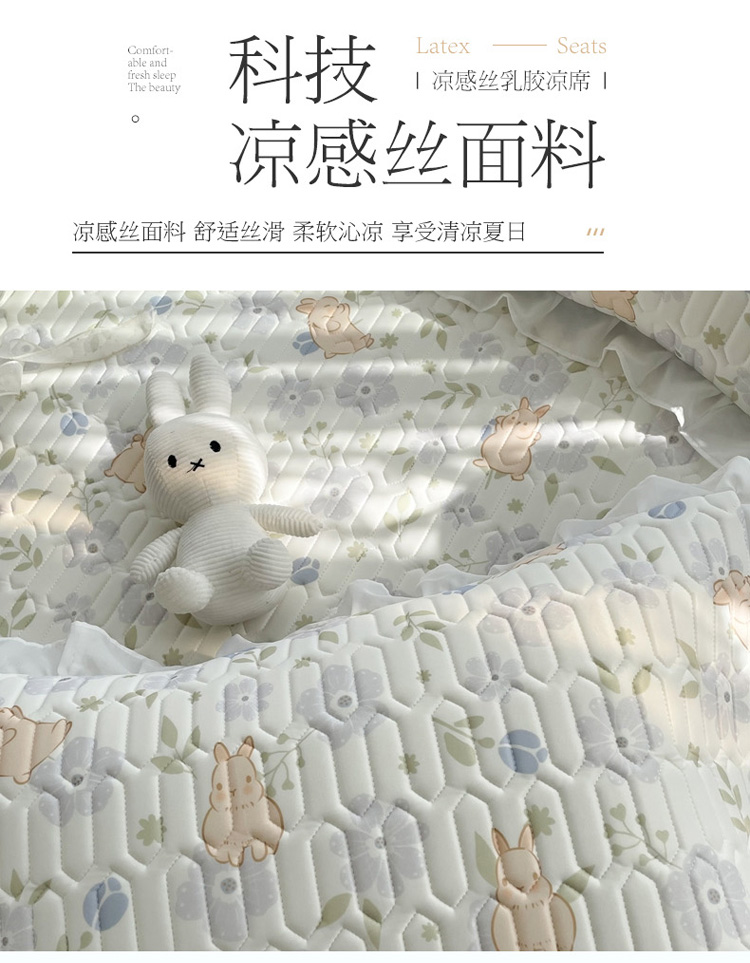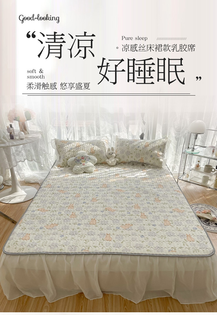 商品名称:慕尚 2022新款凉感丝床裙款乳胶凉席 田园小兔