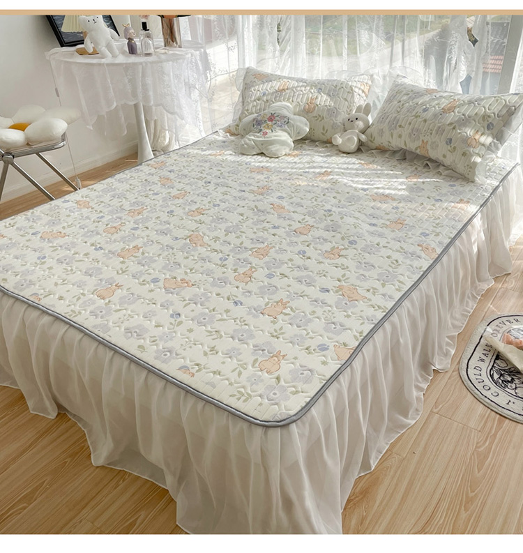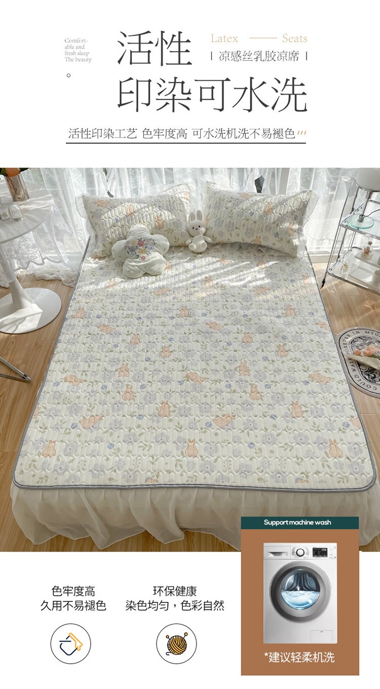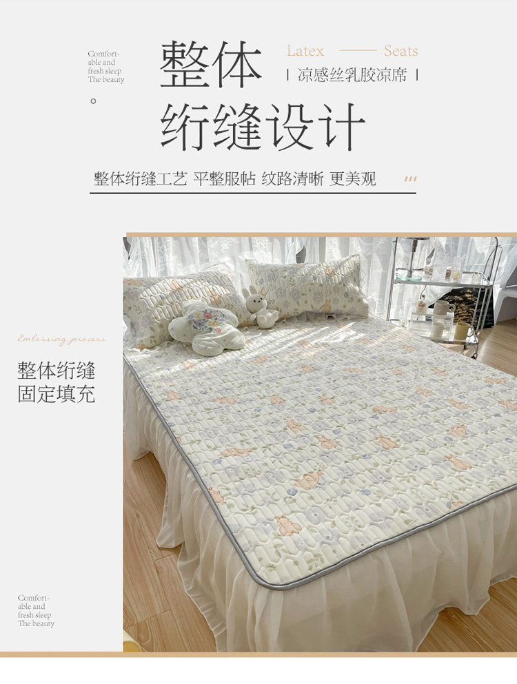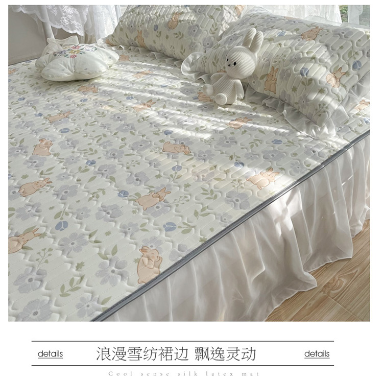 商品名称:慕尚 2022新款凉感丝床裙款乳胶凉席 田园小兔