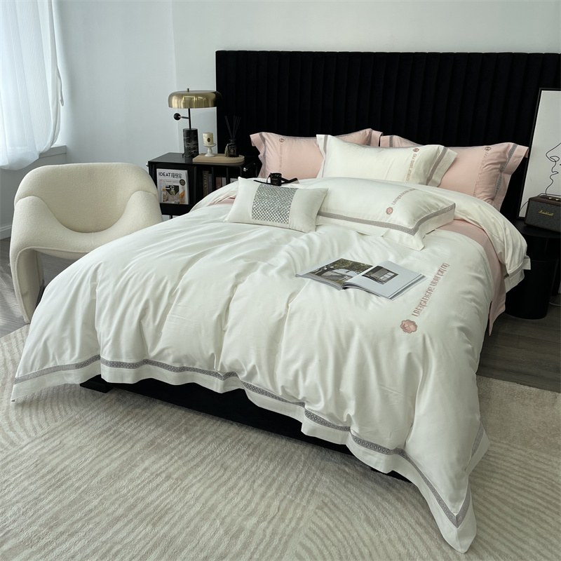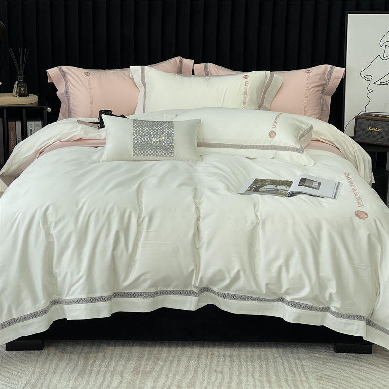(总)缔缦 2024新款定织新布种S140系列刺绣拼角工艺四件套-威廉皇室,威廉皇室 贵族白,威廉皇室 酒红,威廉皇室 深灰
