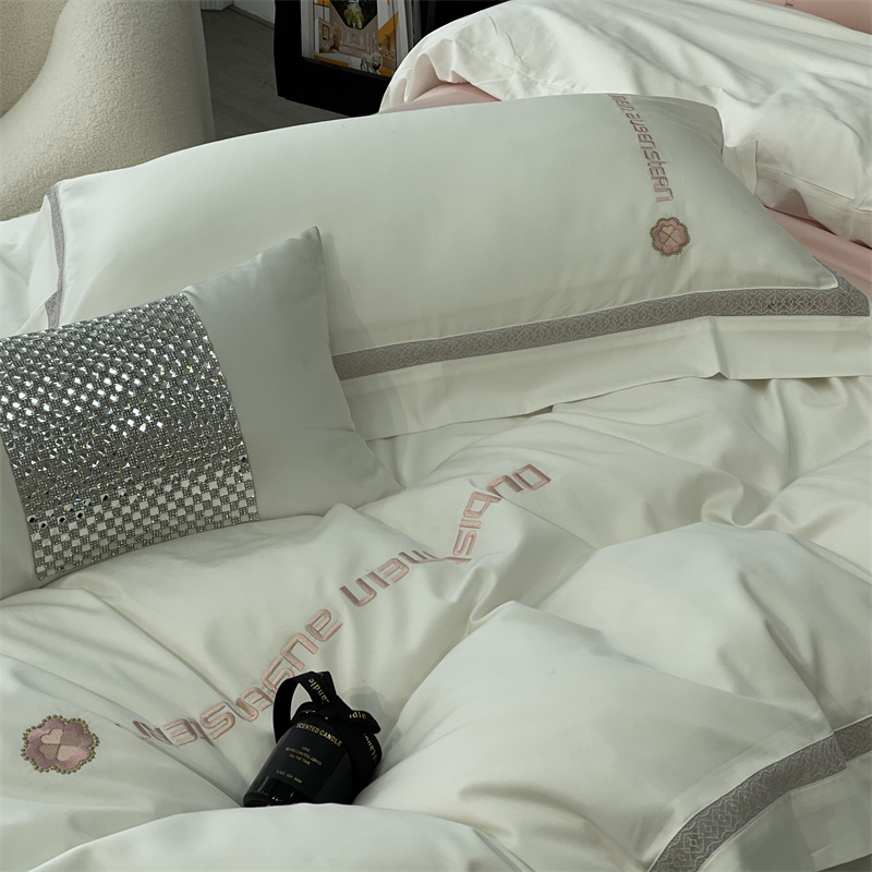 缔缦家纺 2022新款100s澳棉刺绣系列四件套-情深 情深-白