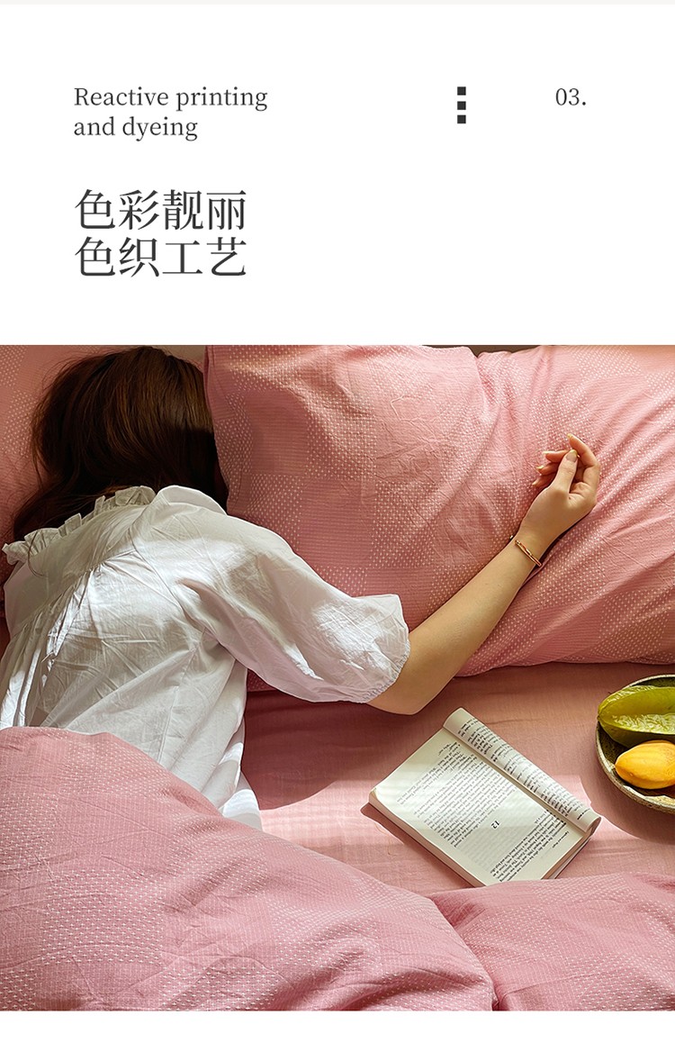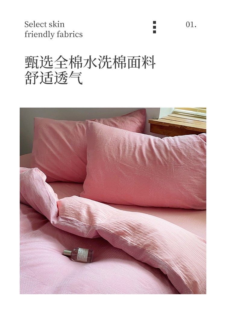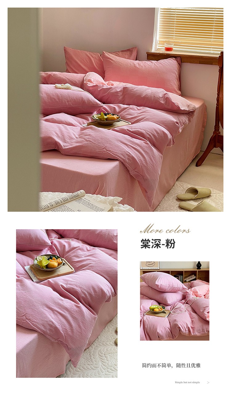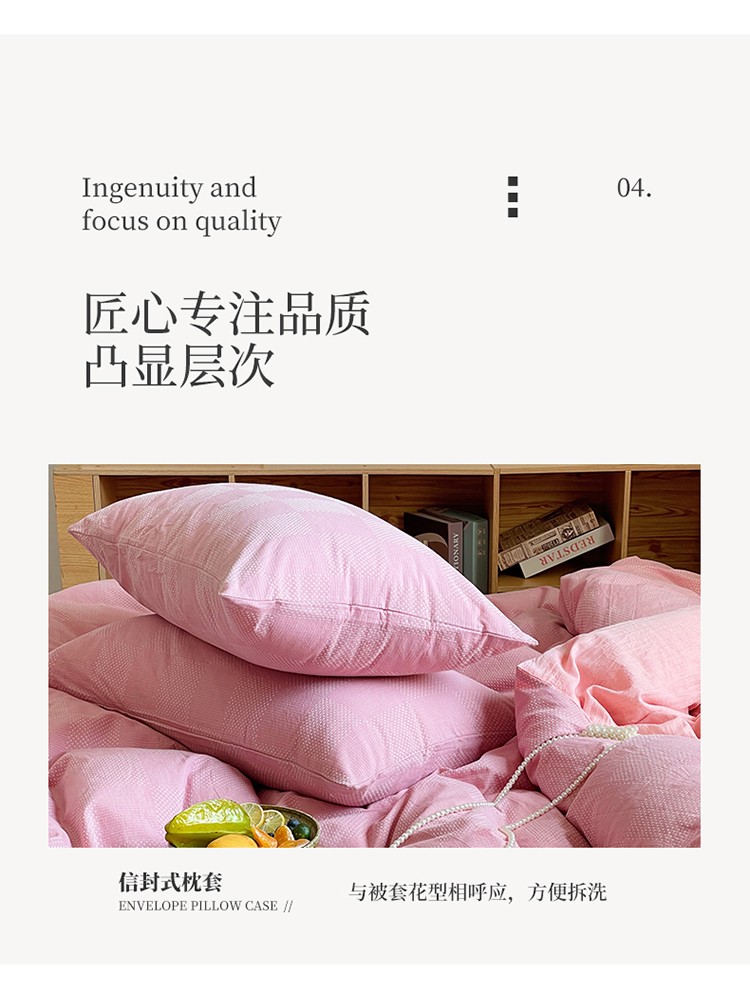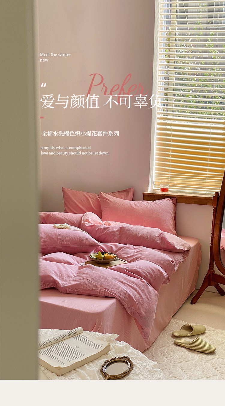 艾咪 新款全棉水洗棉色织小提花四件套/三件套 棠深-粉