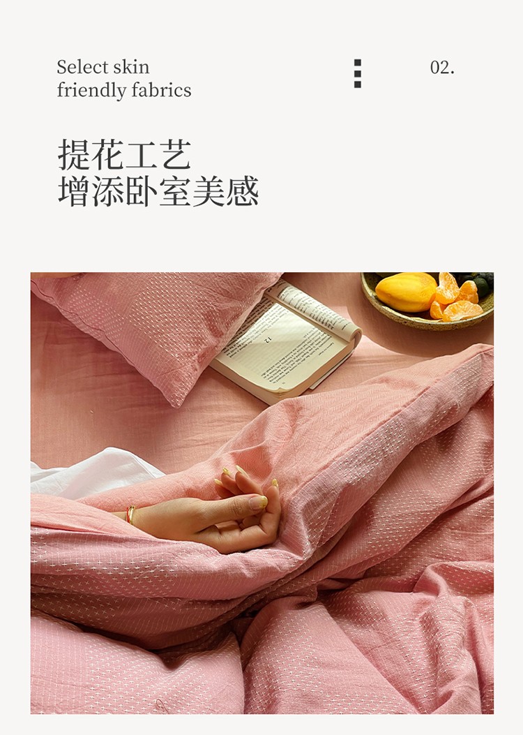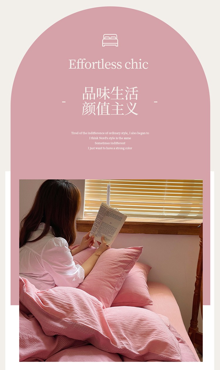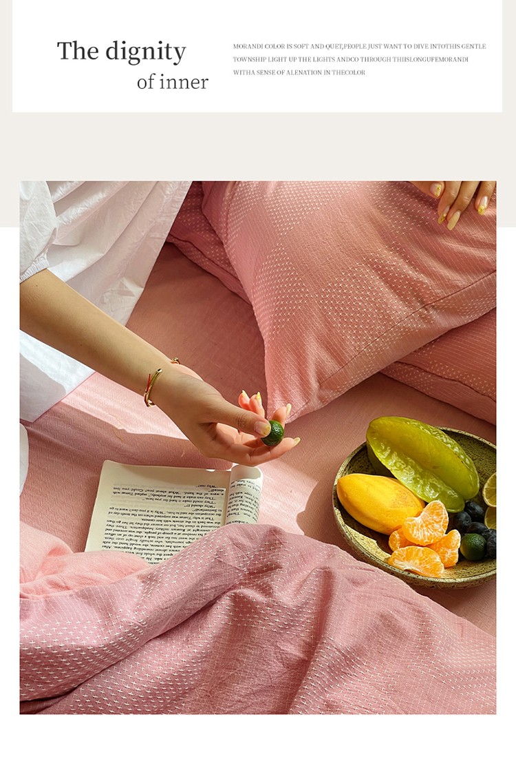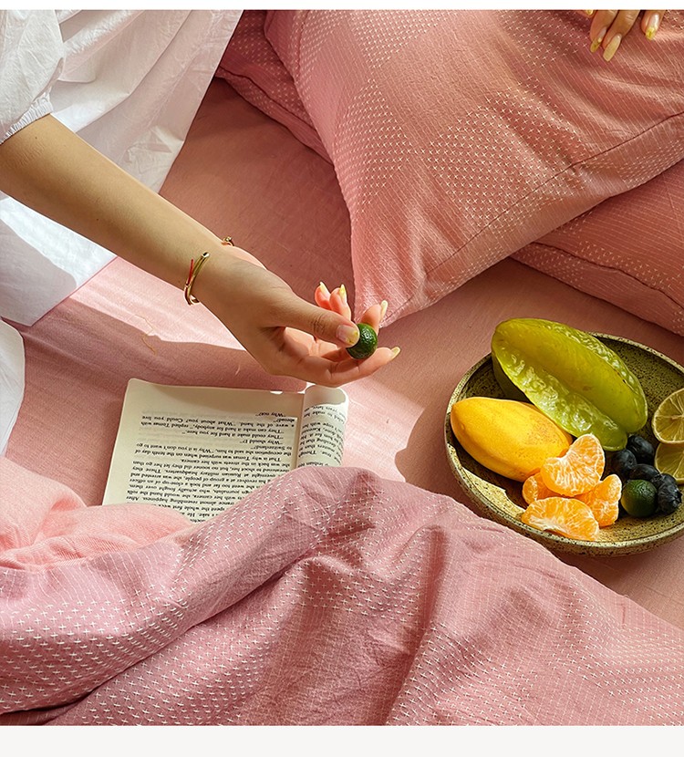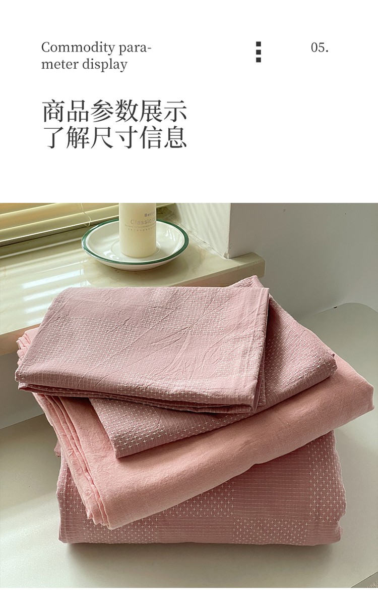 艾咪 新款全棉水洗棉色织小提花四件套/三件套 棠深-粉