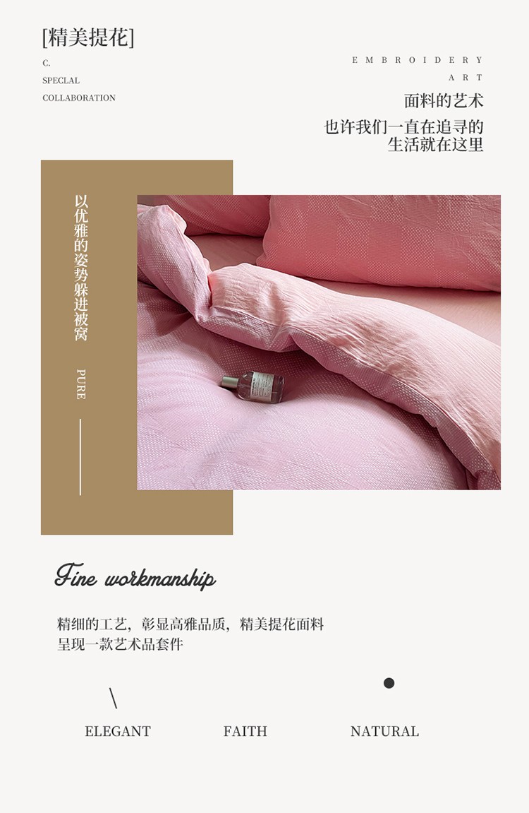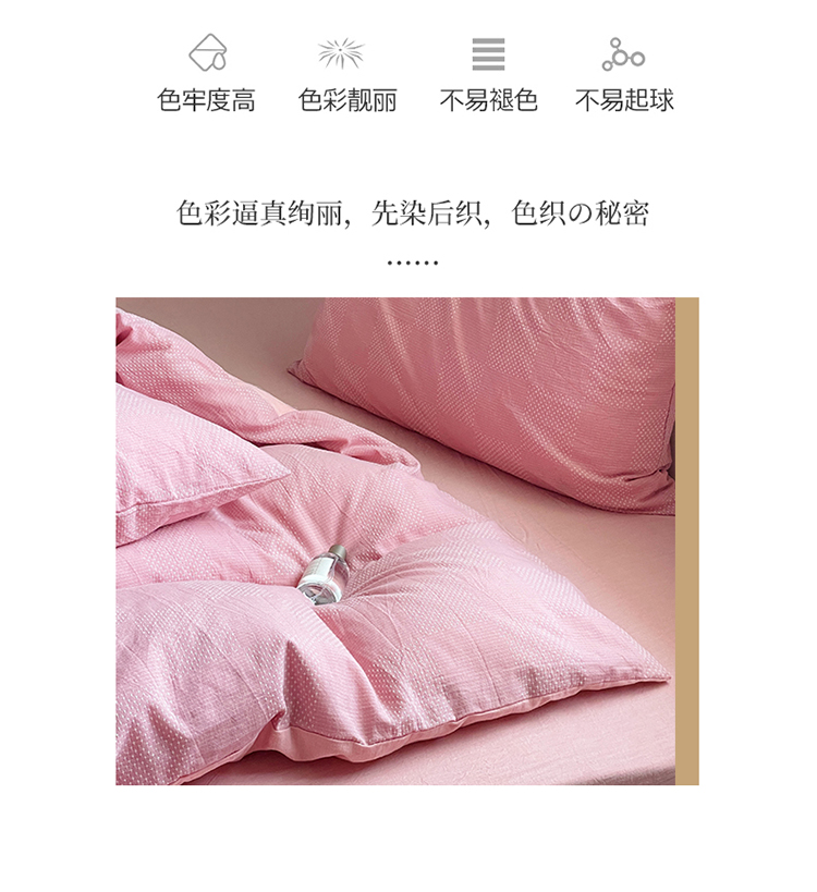 商品名称:艾咪 新款全棉水洗棉色织小提花四件套/三件套 棠深-粉