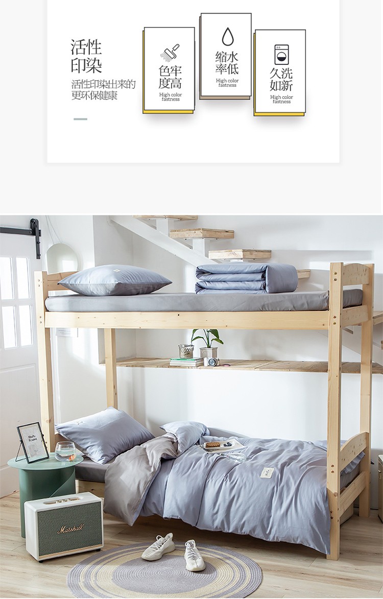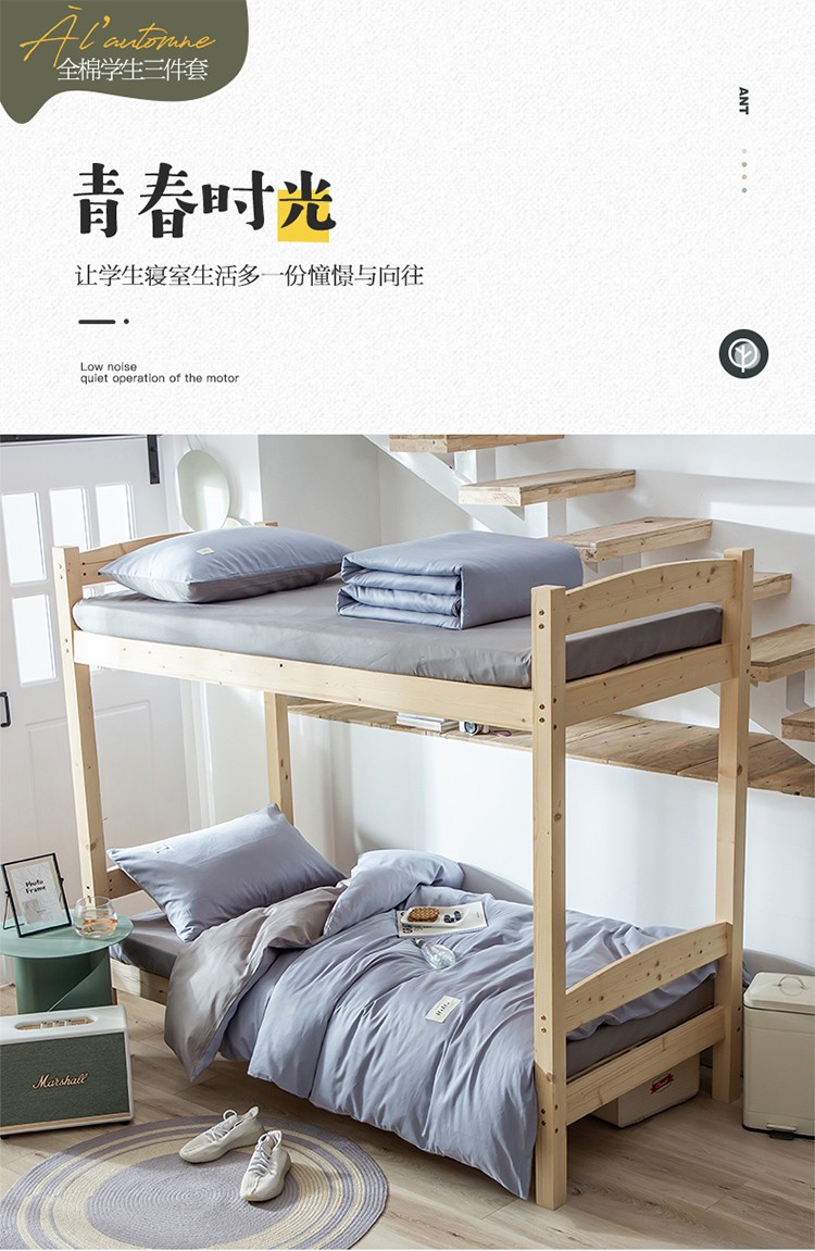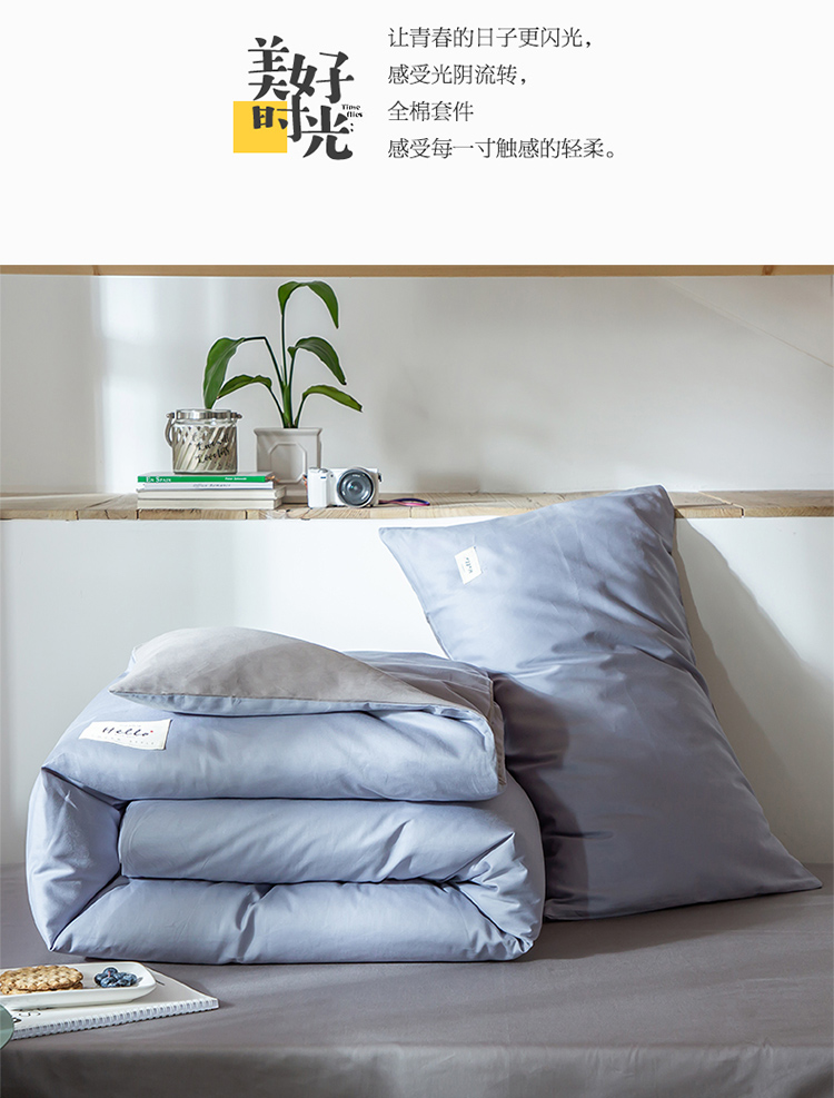 商品名称:纯色拼色全棉纯棉正宗13372学生宿舍三件套寝室上下铺六件套 浅蓝+浅灰