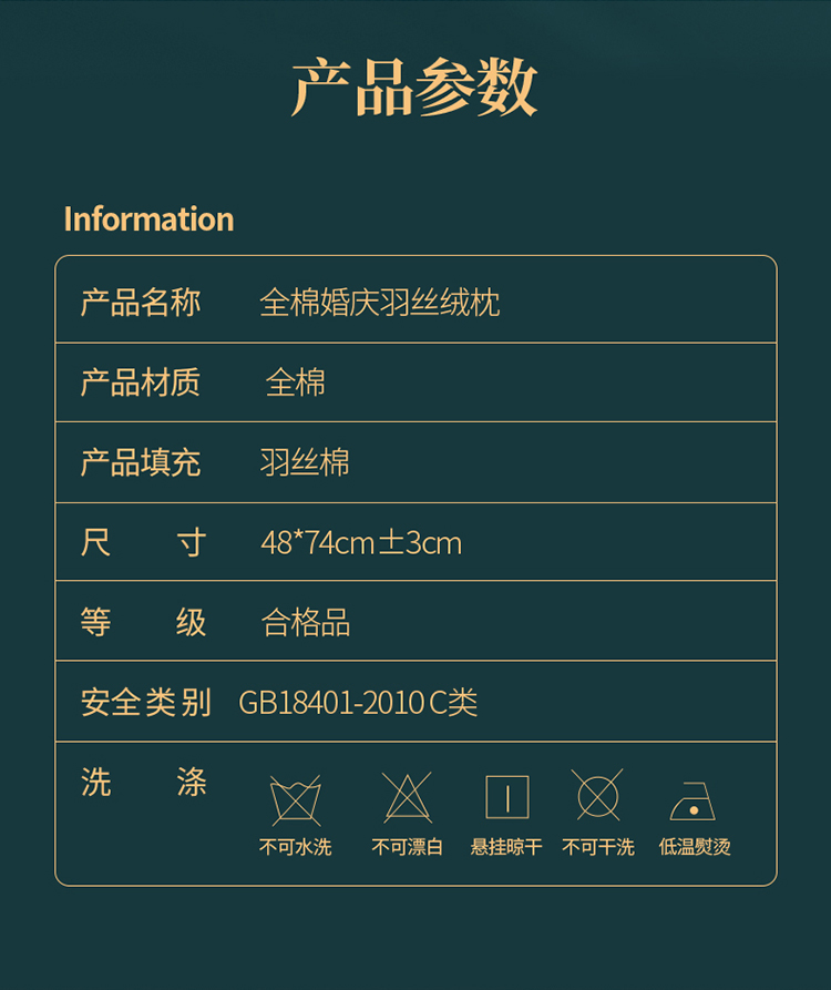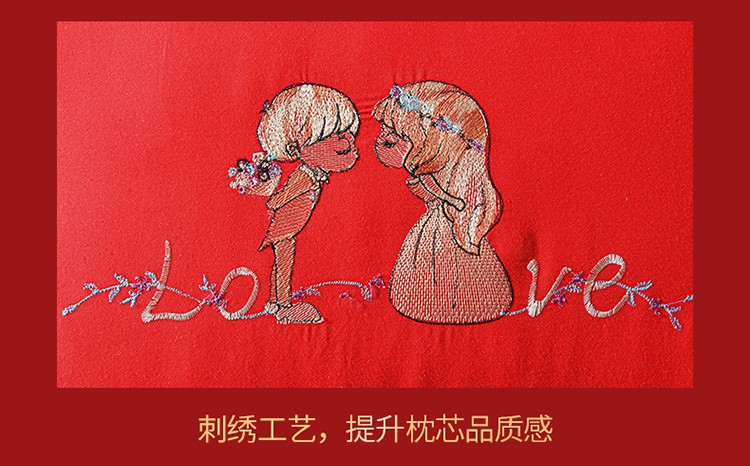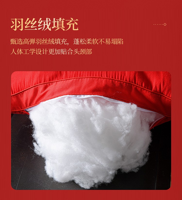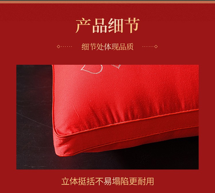 商品名称:新款婚庆全棉枕芯刺绣款羽丝绒枕头纯棉立体大红色