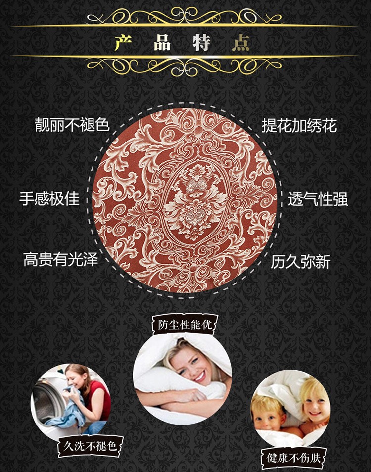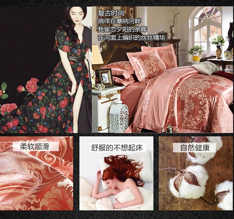 商品名称:卡迪亚 2022新款全棉13372贡缎提花四件套欧风典尚桔红