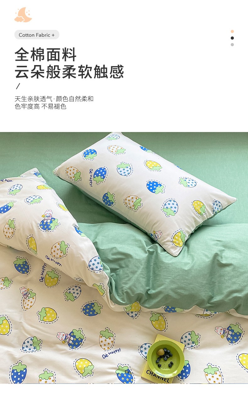 商品名称:麦伦 2022新款13372全棉儿童卡通系列单被套 草莓啵啵