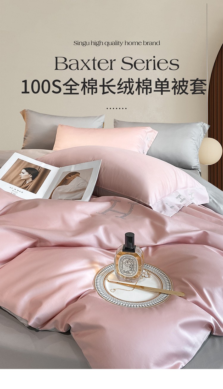 798家纺 2022新款长绒棉贡缎单被套 浅豆沙