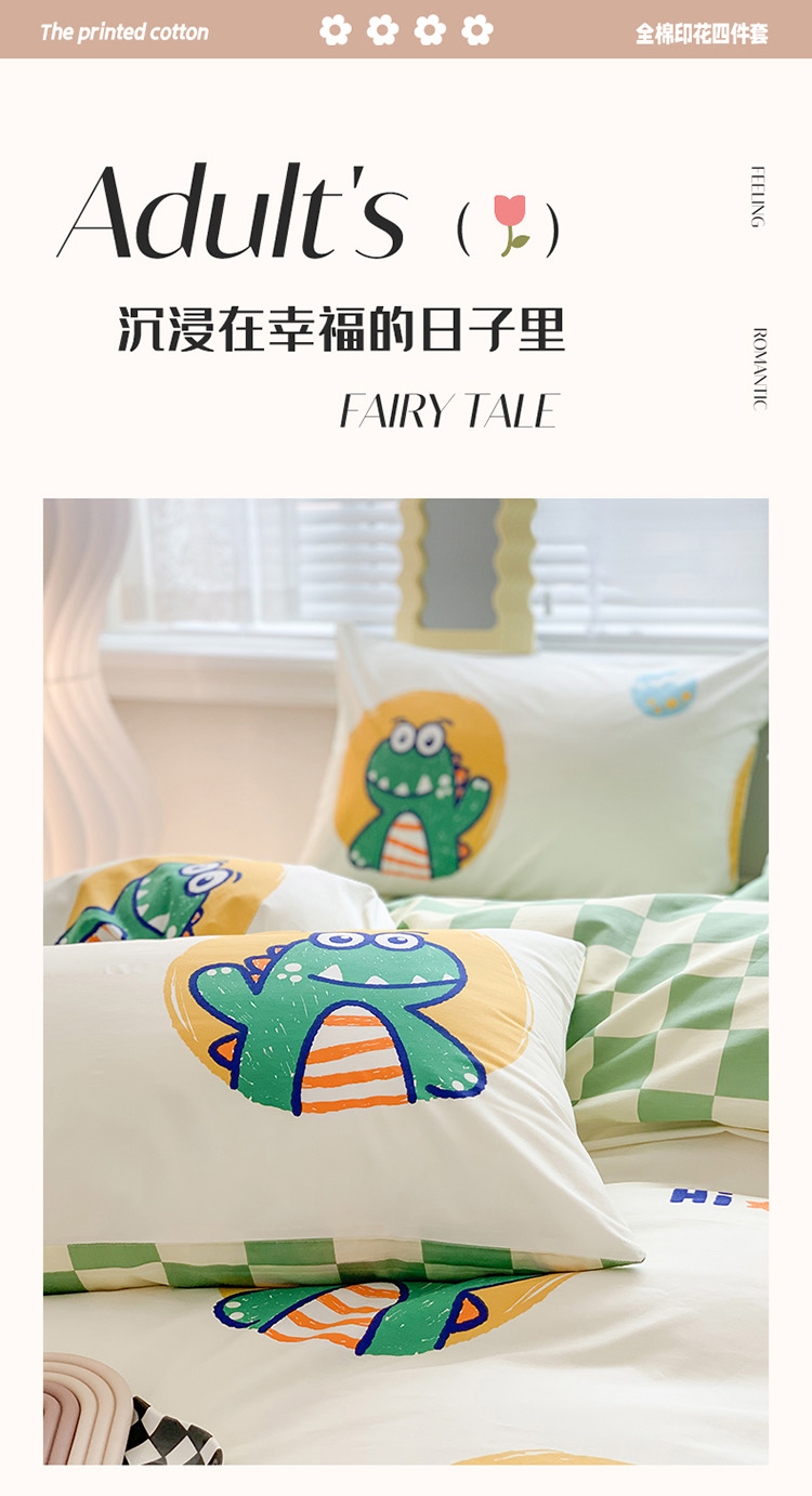 商品名称:澳萝拉 2023新款全棉印花四件套会员减5元 嗨迪诺