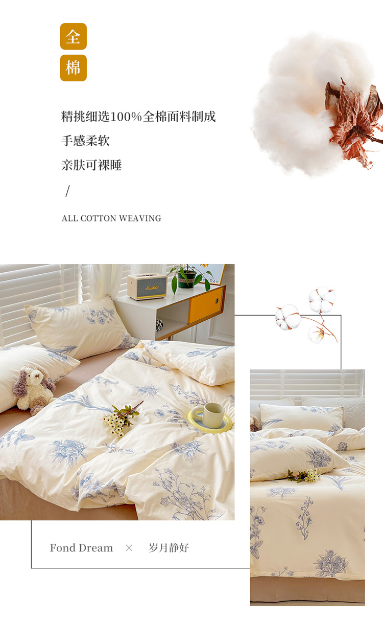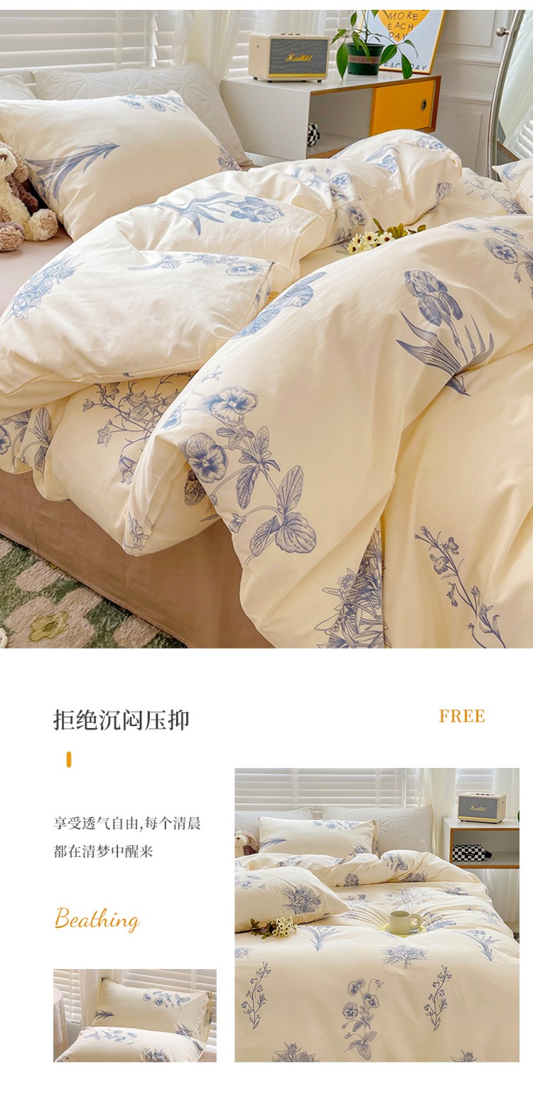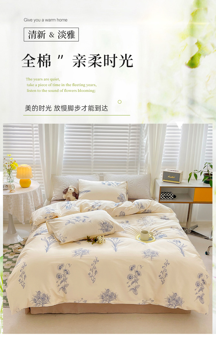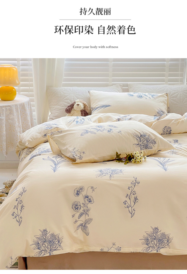 (总)捌月 2025新款13372全棉四件套花园里系列小清新全棉四件套热卖新品,艾美,蓝风铃,蓝汐,流年,魅影,木兰,年华,浅浅,青花瓷,青木,轻颜,韶华,思绪,汐月