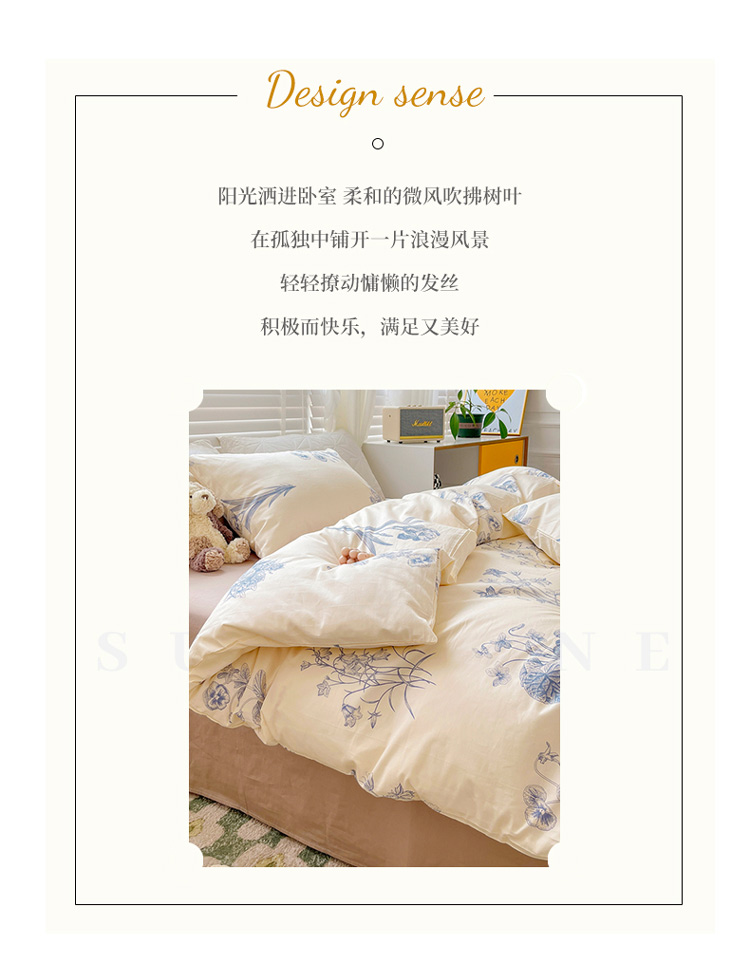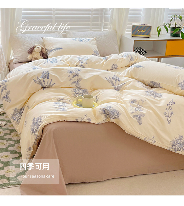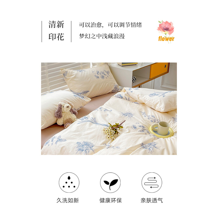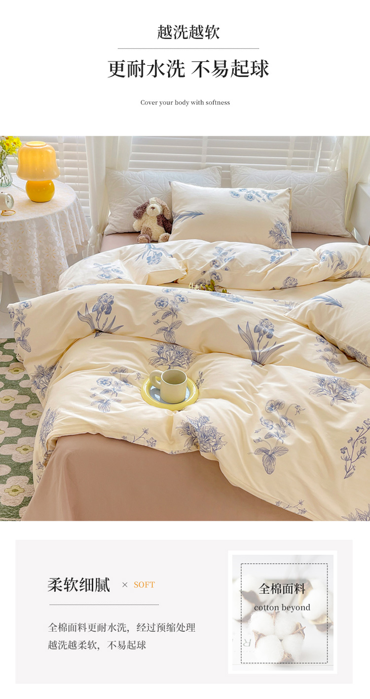 (总)捌月 2025新款13372全棉四件套花园里系列小清新全棉四件套热卖新品,艾美,蓝风铃,蓝汐,流年,魅影,木兰,年华,浅浅,青花瓷,青木,轻颜,韶华,思绪,汐月