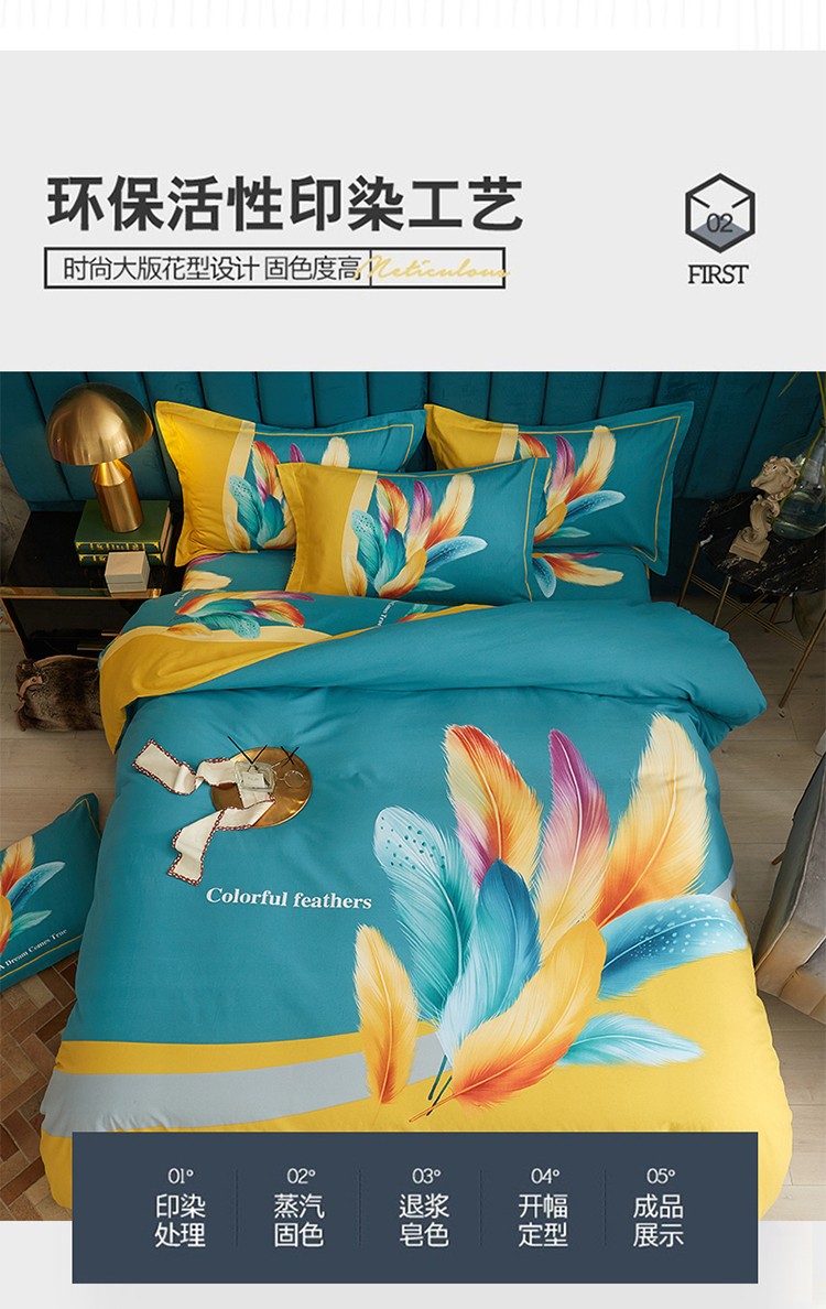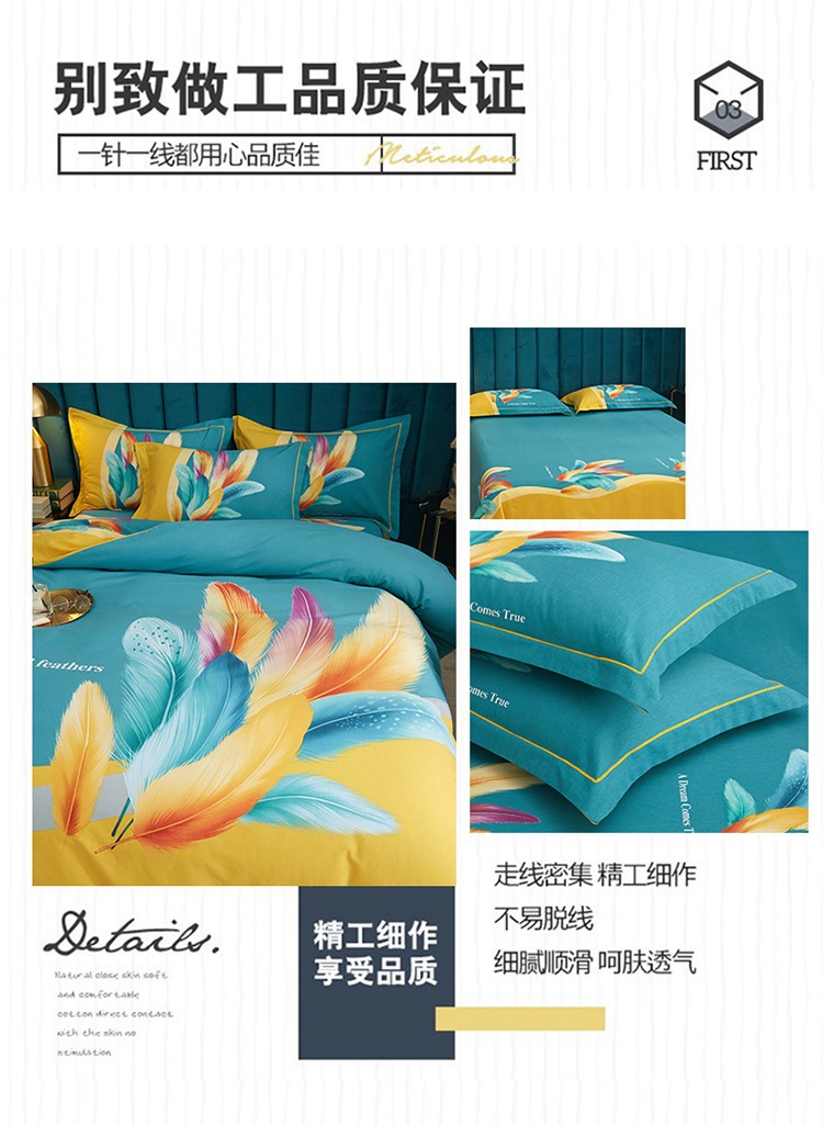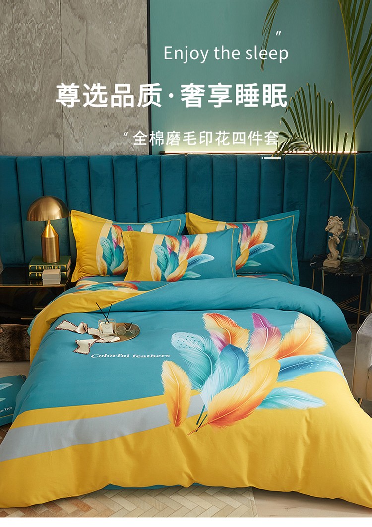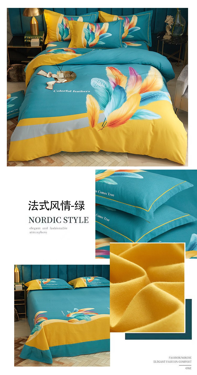 商品名称:金纱玉纺2022新款全棉生态大版磨毛四件套 法式风情-绿