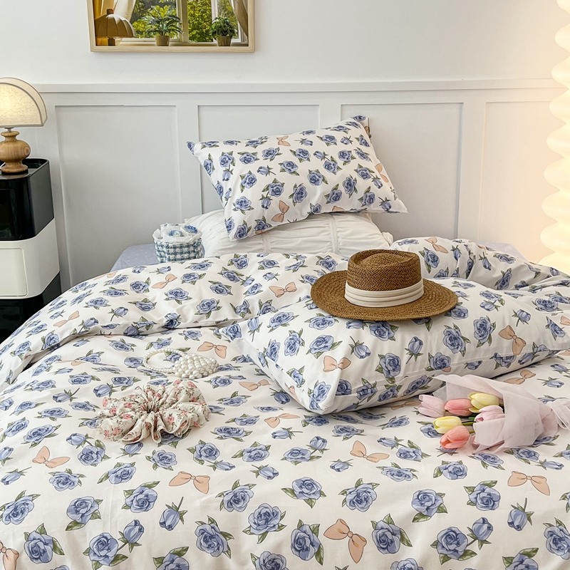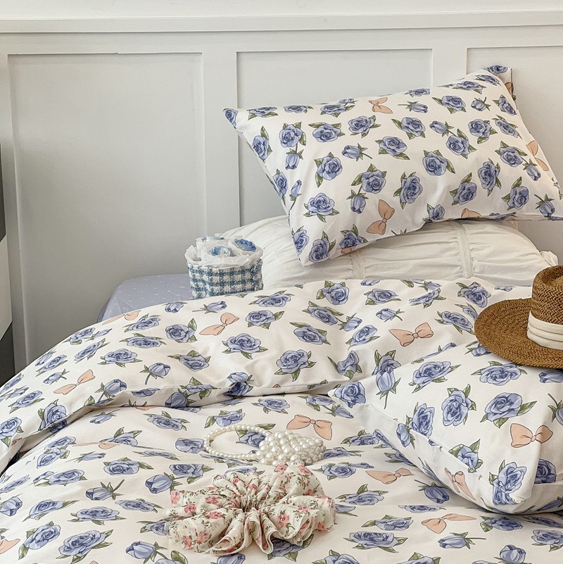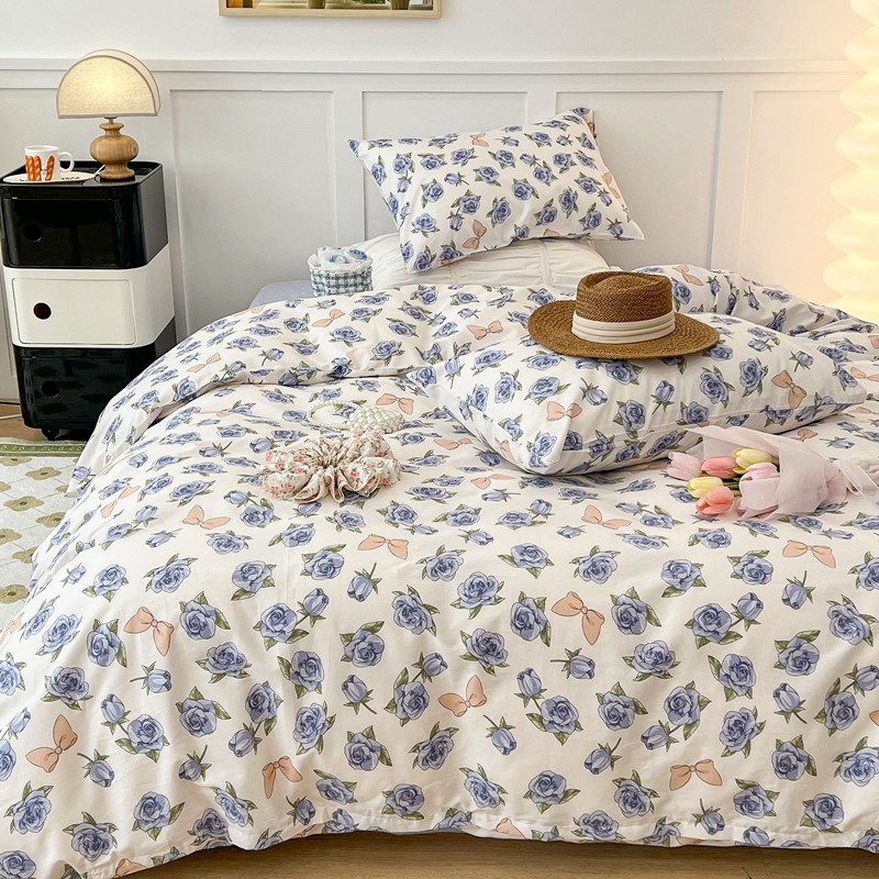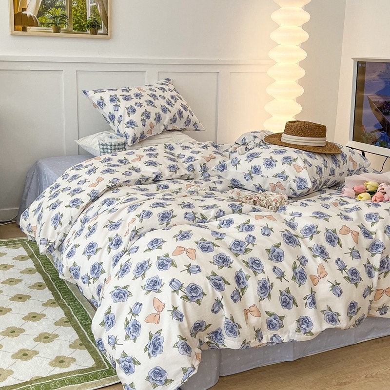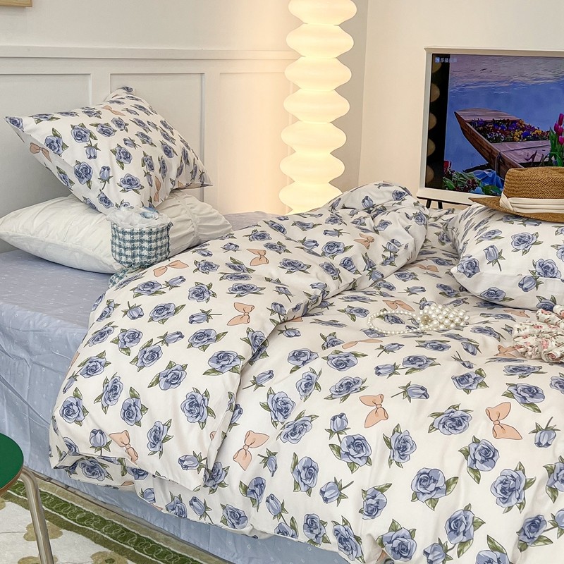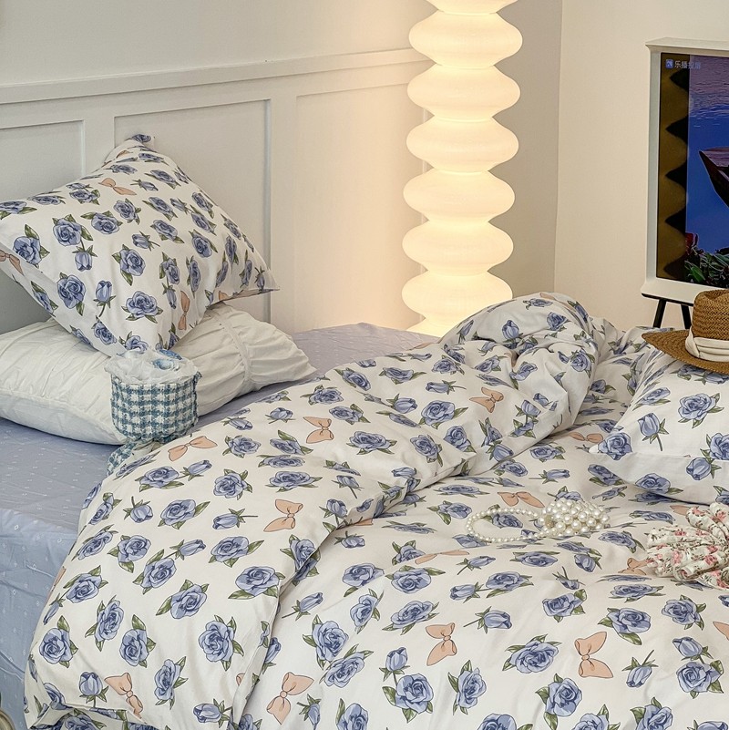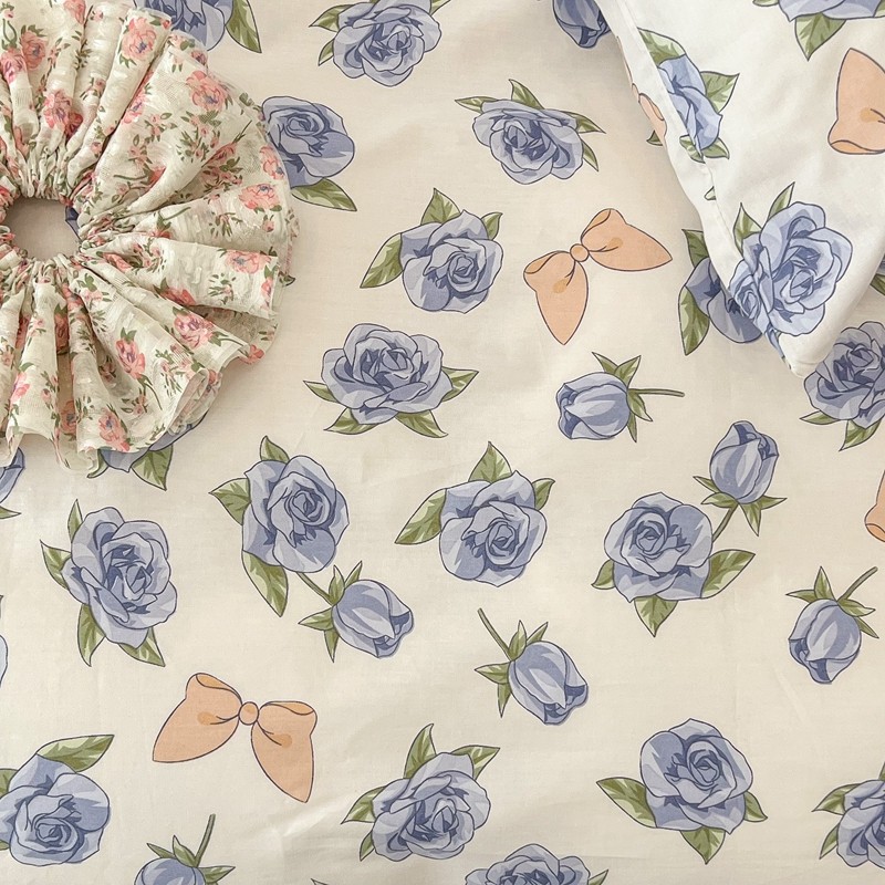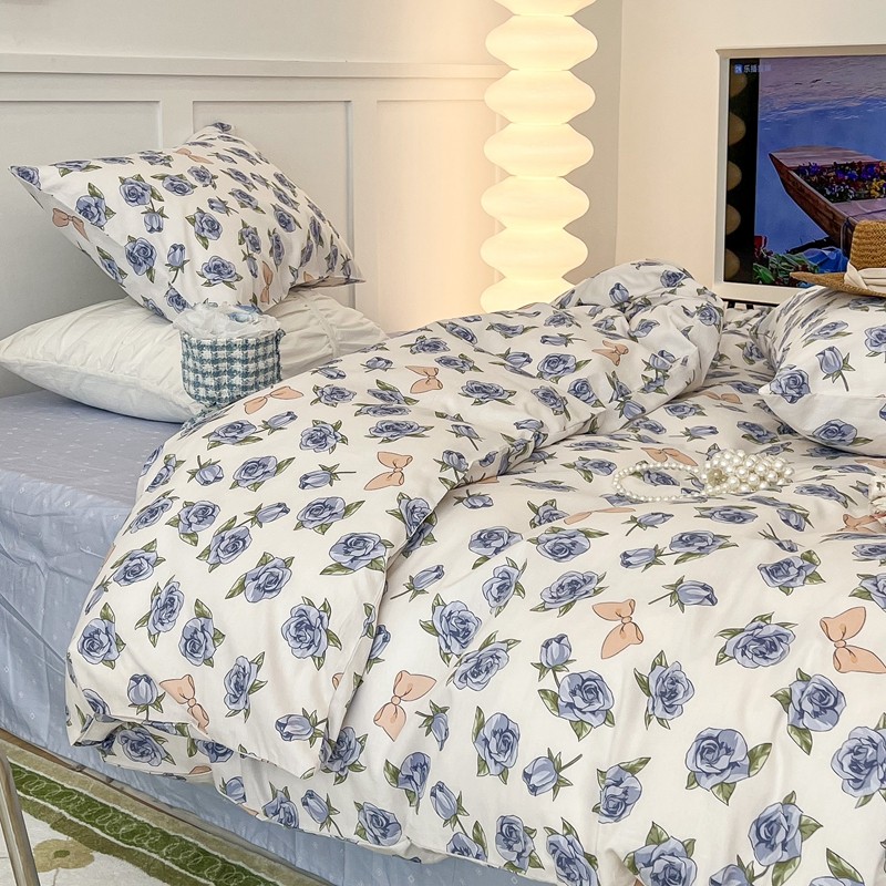 昔可家纺2022新款奶呼呼卧室四件套 蓝玫瑰蝴蝶结