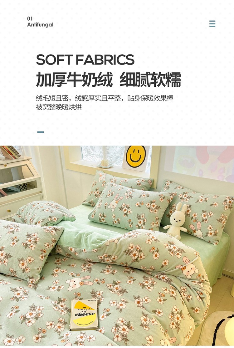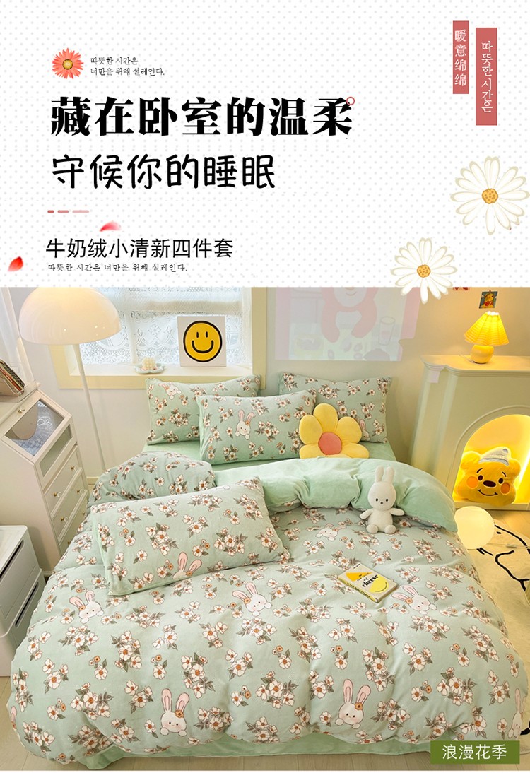 当前位置: 91家纺网 > 商品网购 > 床品套件 > 四件套 > 牛奶绒四件套 > 金爱家 2023新款牛奶绒小清新四件套 浪漫花季