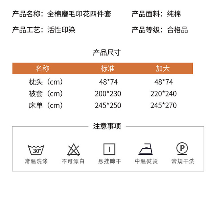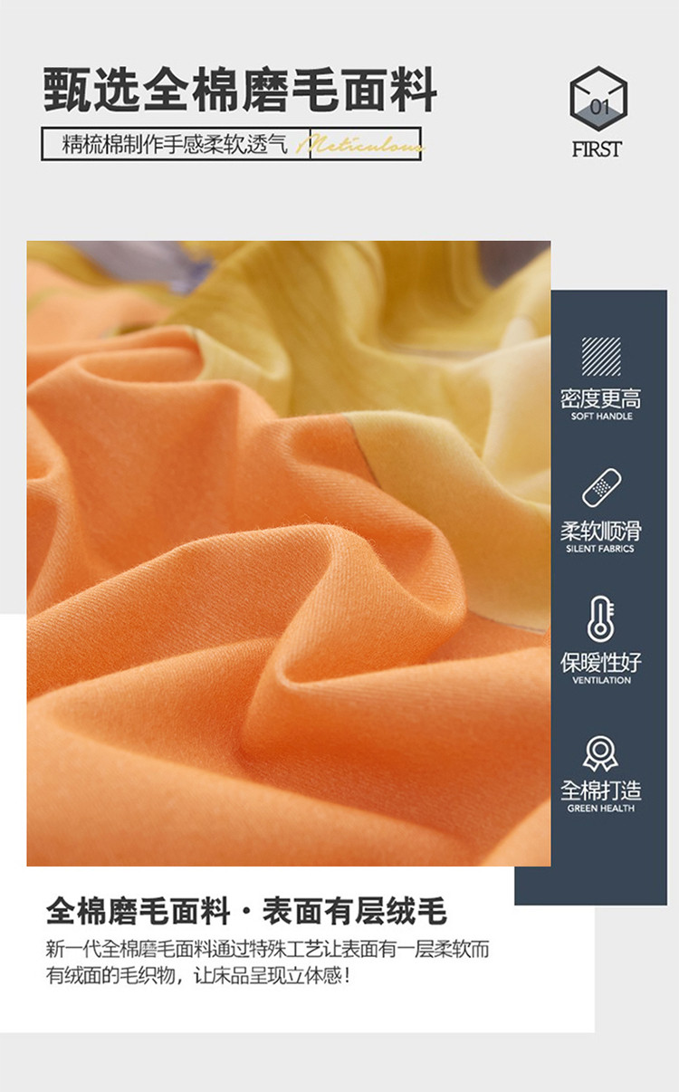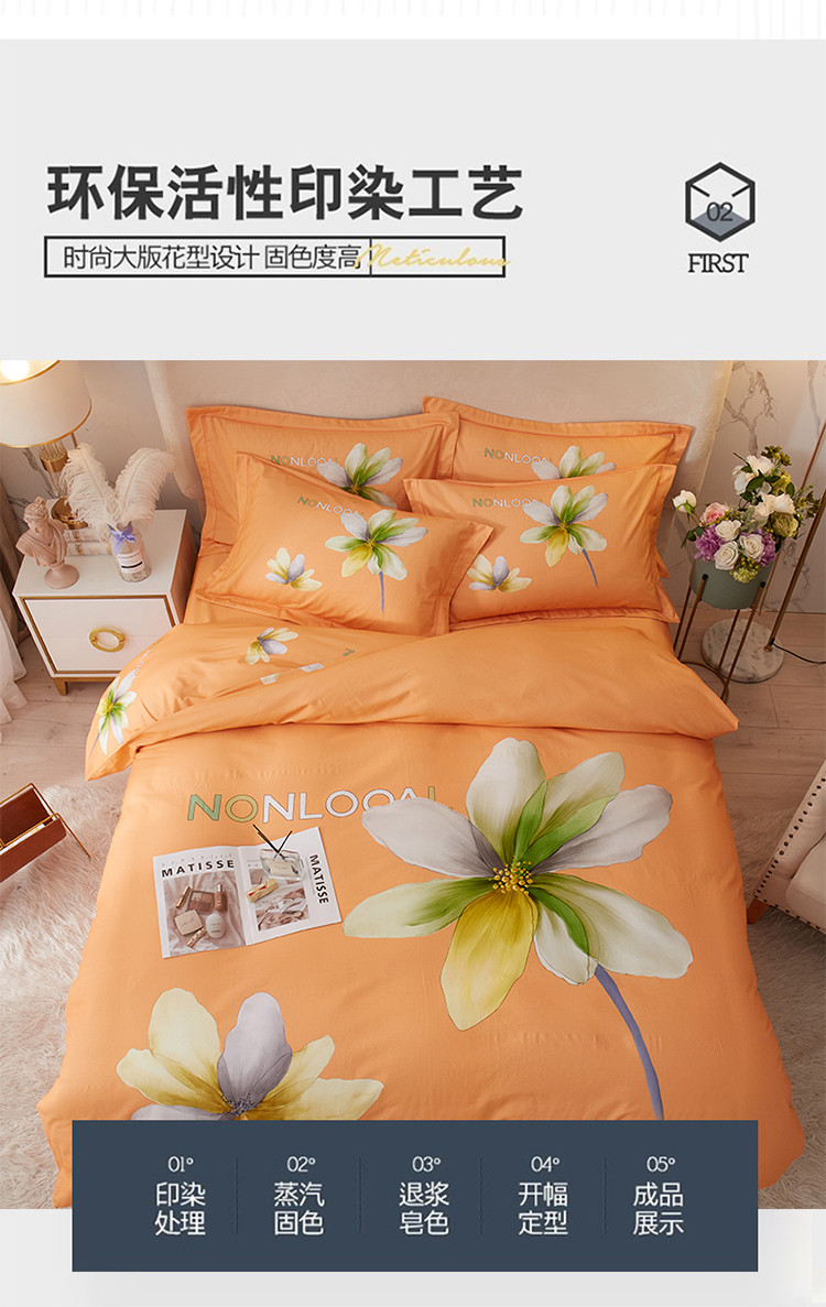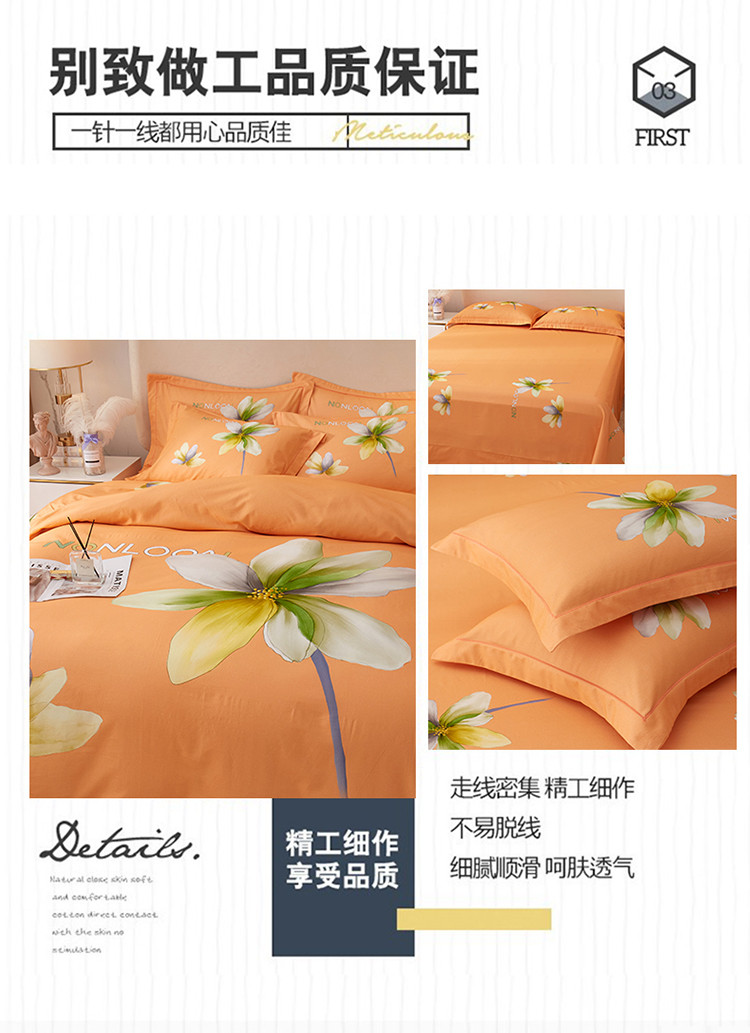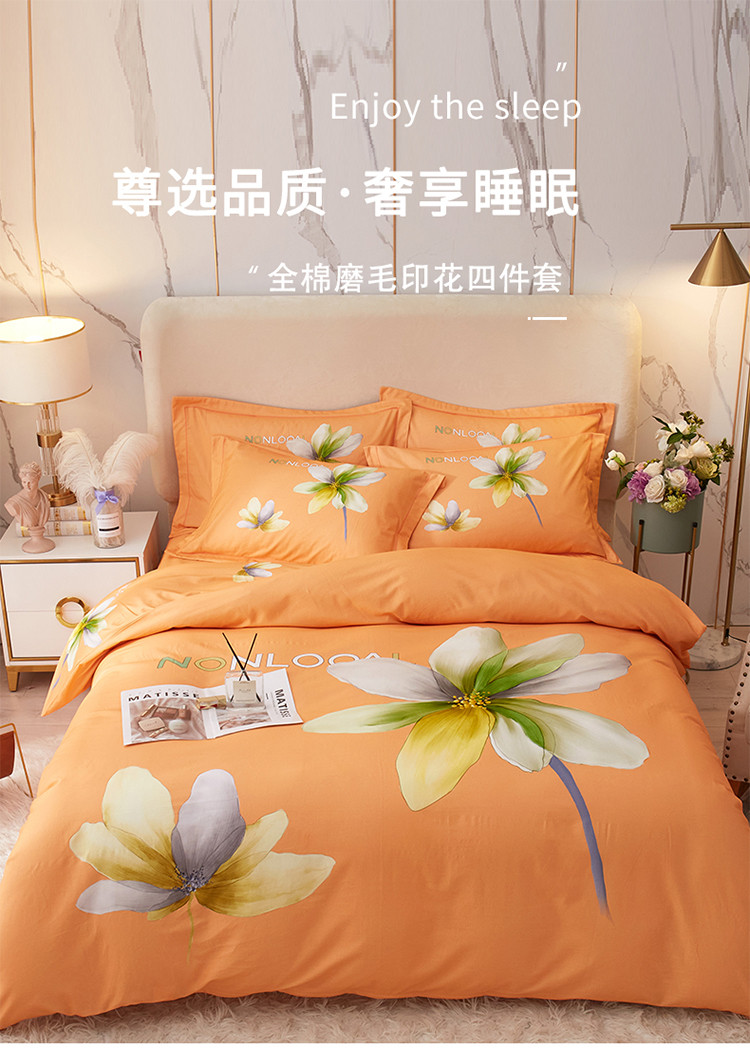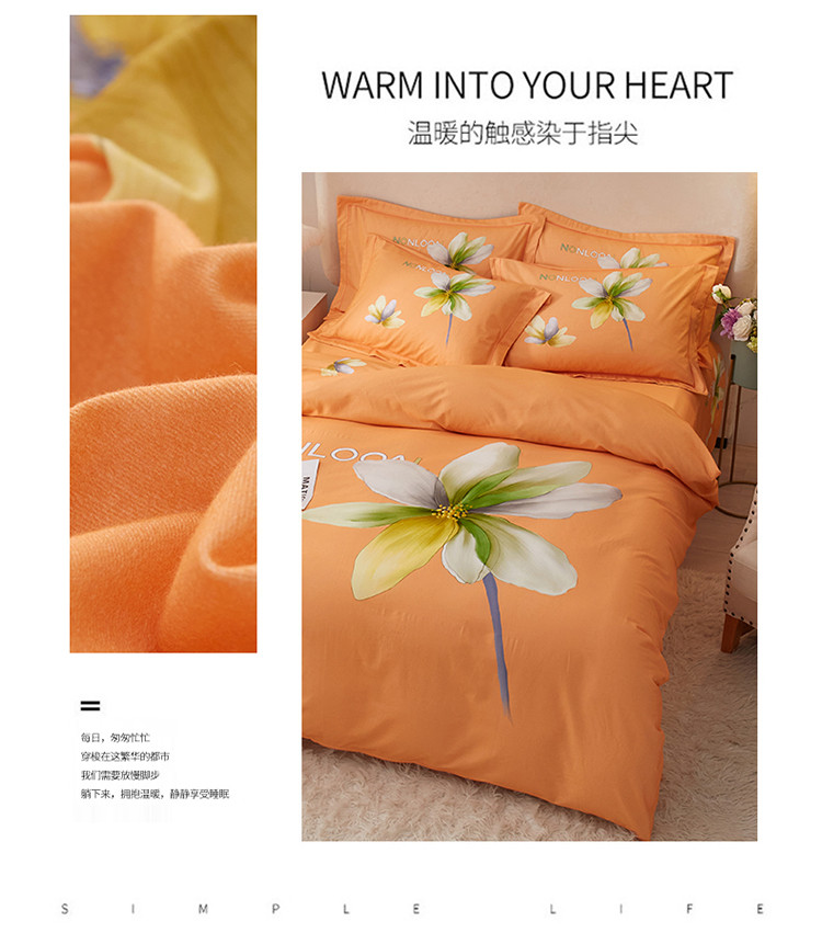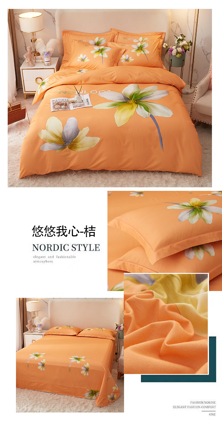 商品名称:金纱玉纺2022新款全棉生态大版磨毛四件套悠悠我心-桔