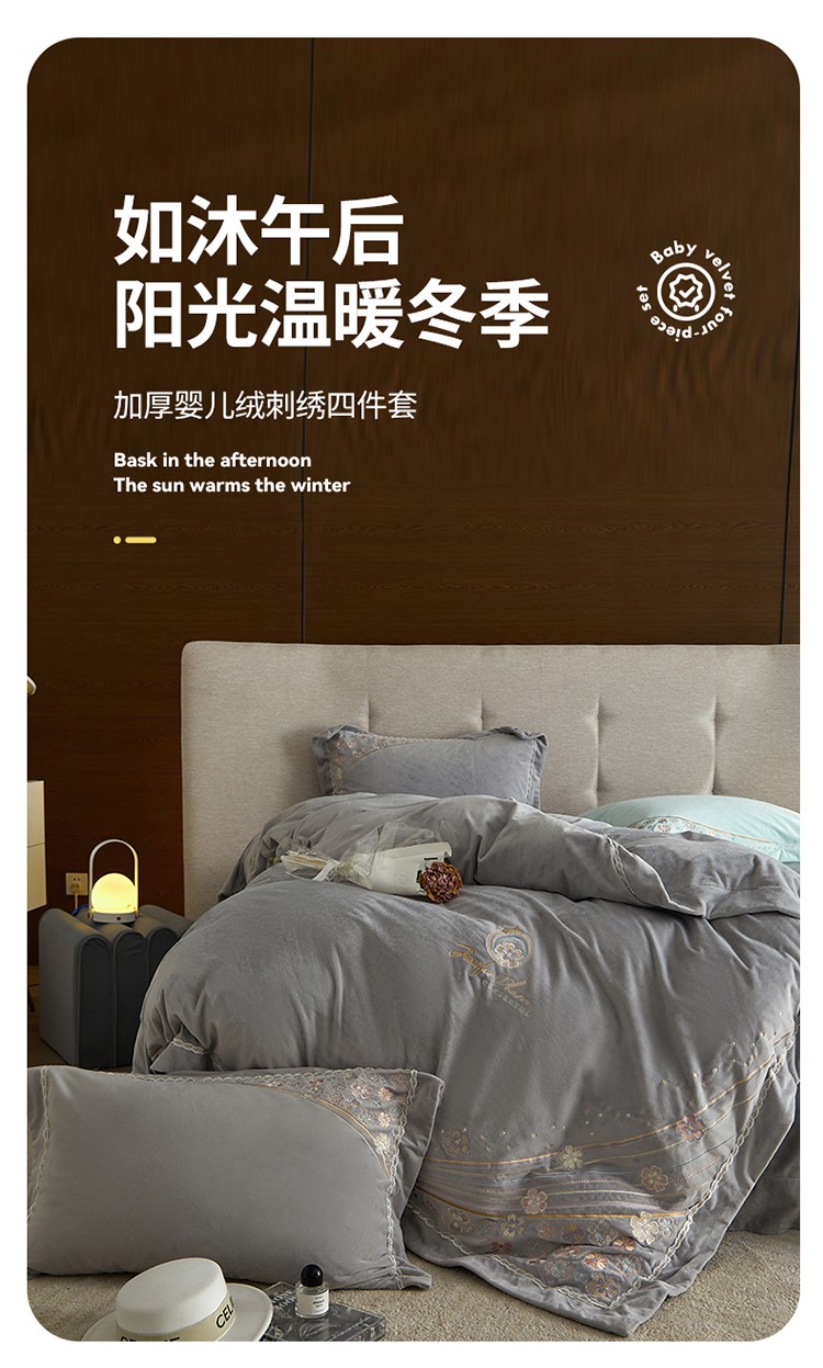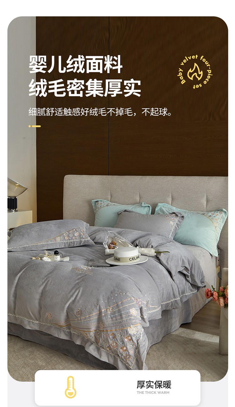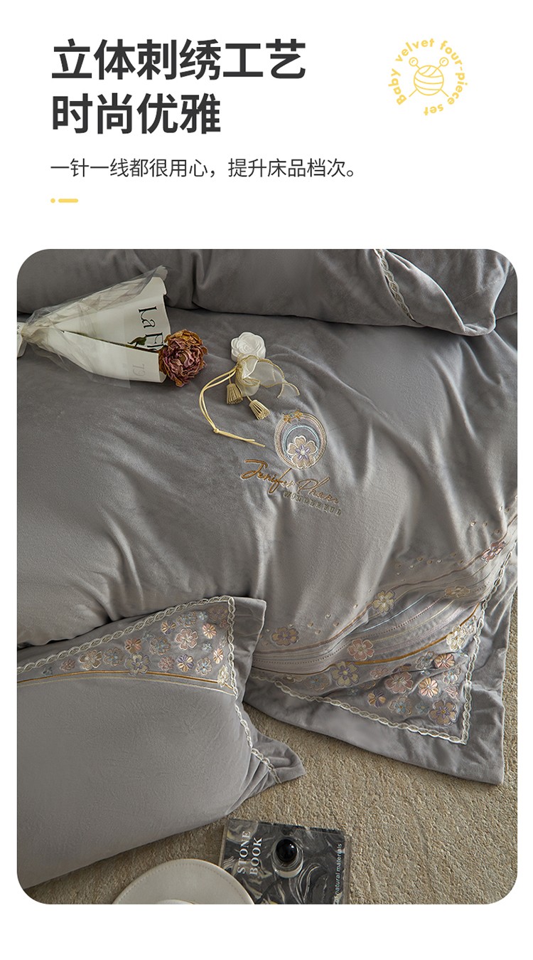商品名称:名品优仓2022新款刺绣婴儿绒230克四件套-温柔时光高级灰