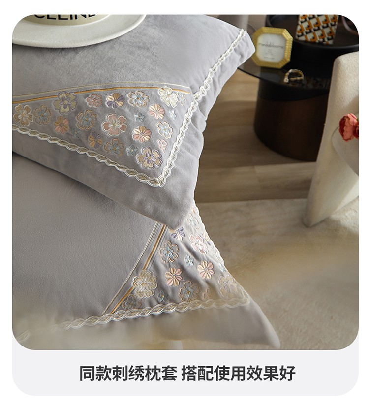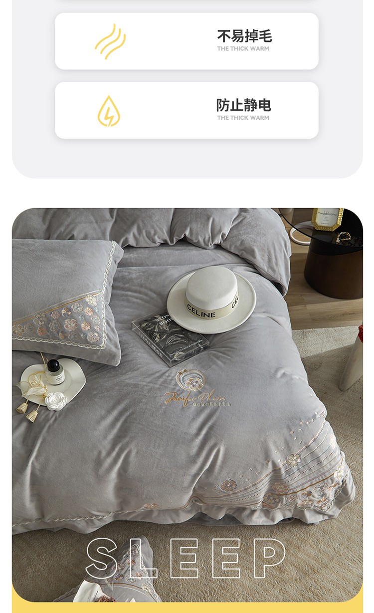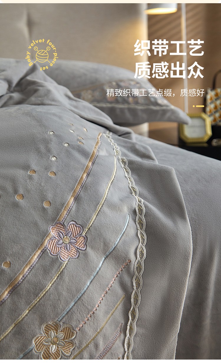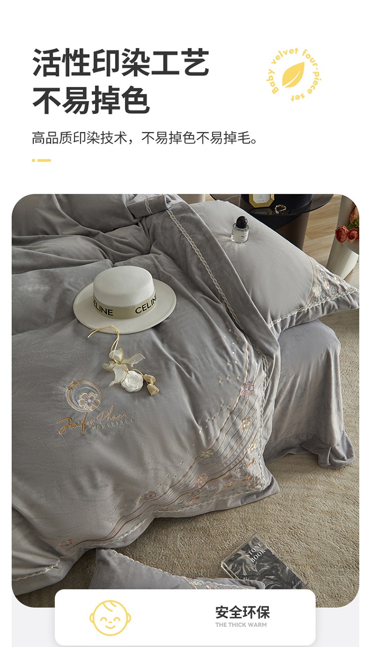 商品名称:名品优仓2022新款刺绣婴儿绒230克四件套-温柔时光高级灰