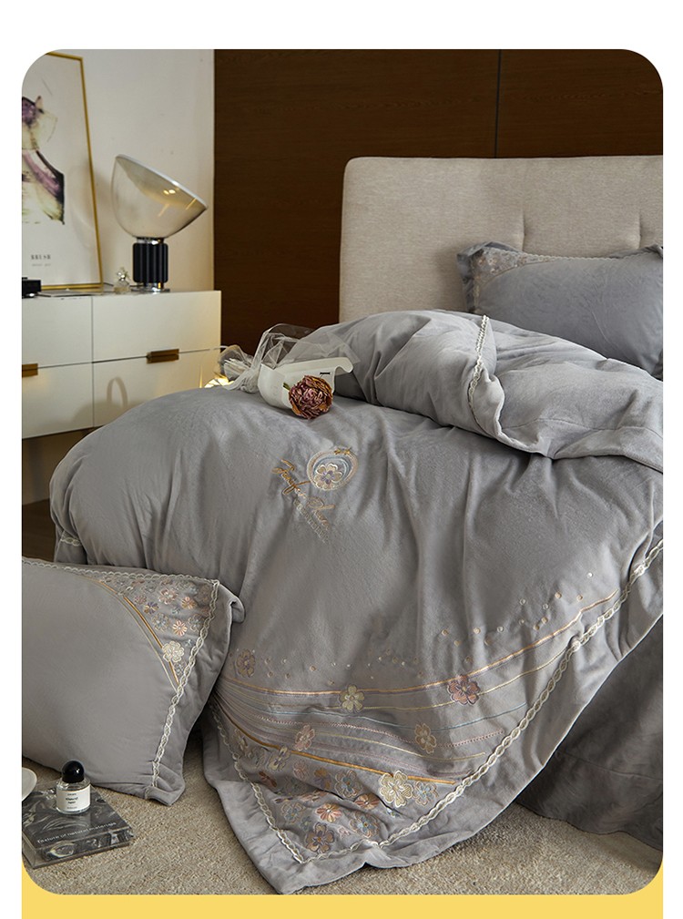 名品优仓2022新款刺绣婴儿绒230克四件套-温柔时光高级灰