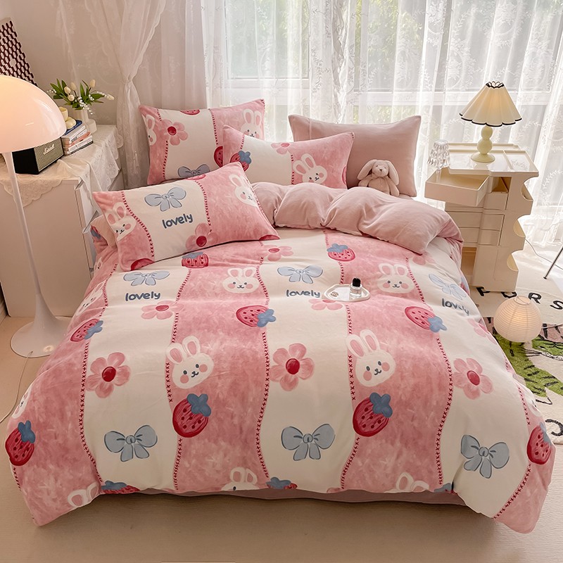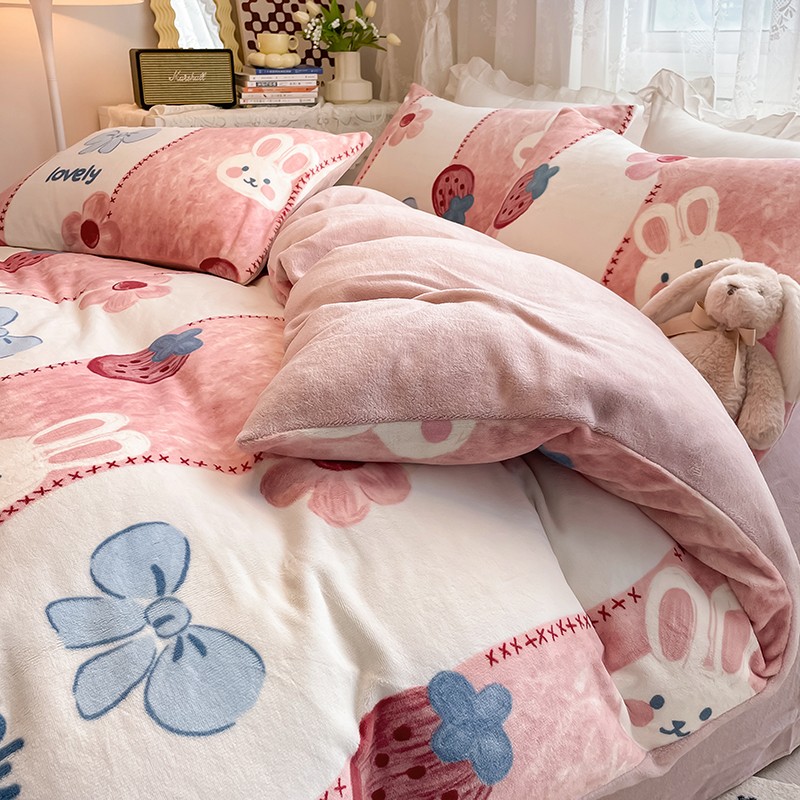 (总)HL原创 2025新款亲肤舒适韩版温暖牛奶绒四件套-花边款,花边款-法式花园,花边款-蝴蝶结,花边款-简约格,花边款-美拉德格子,花边款-甜心小兔,花边款-星星熊