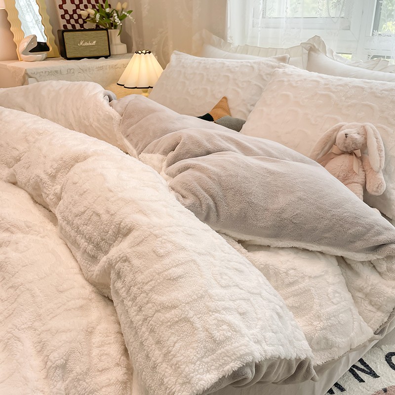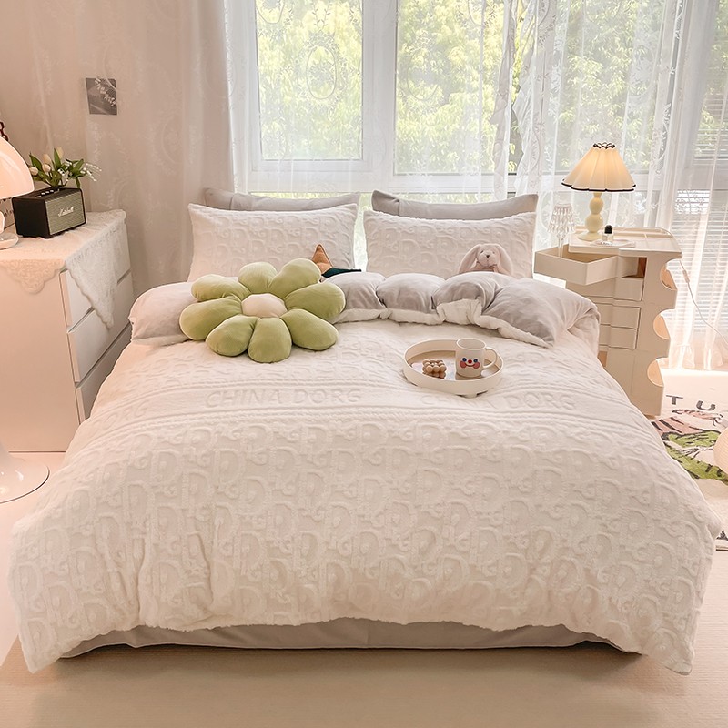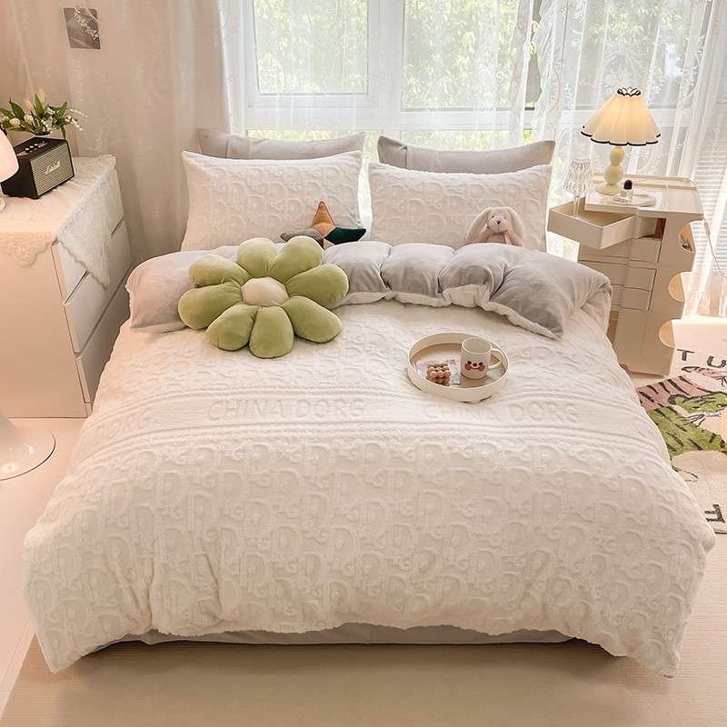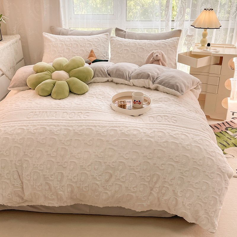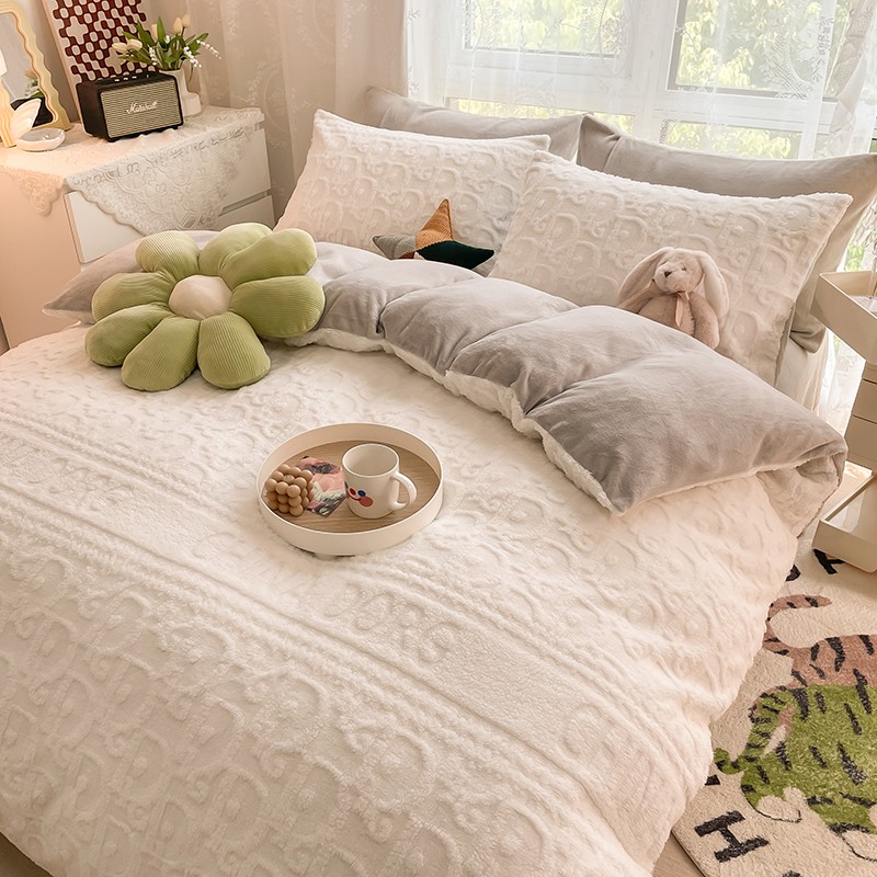 HL原创 2022新款色织提花牛奶绒四件套 提花绒-奶白