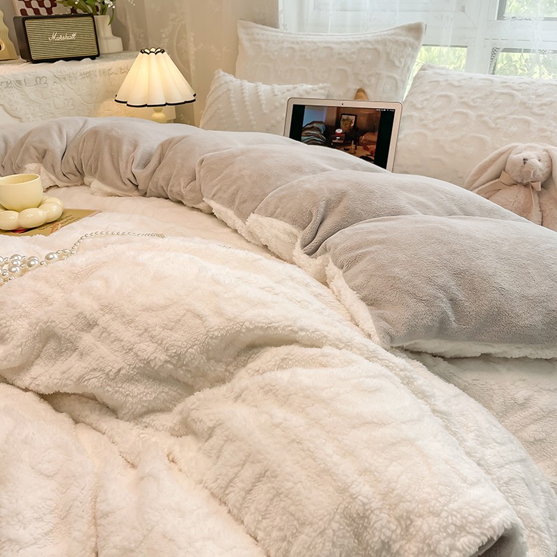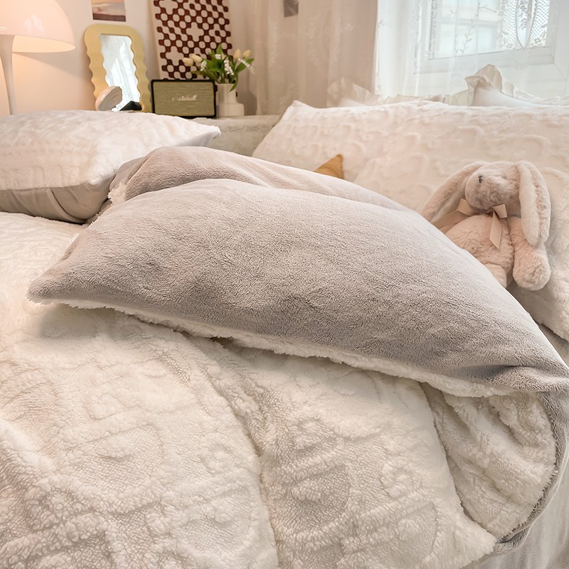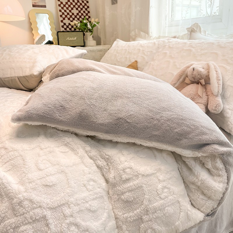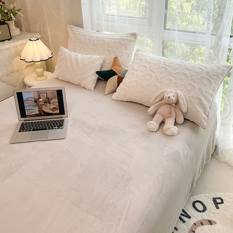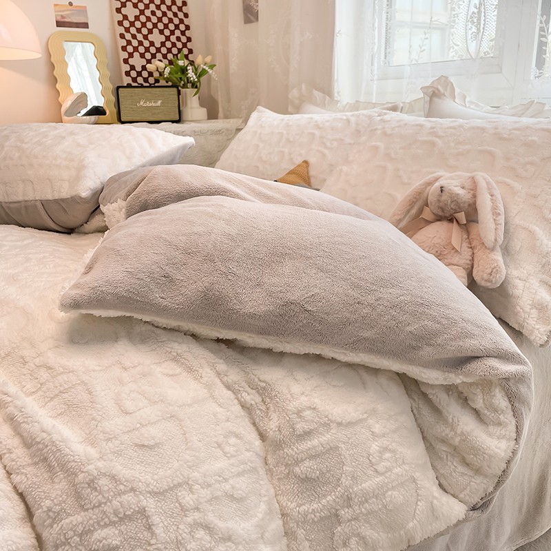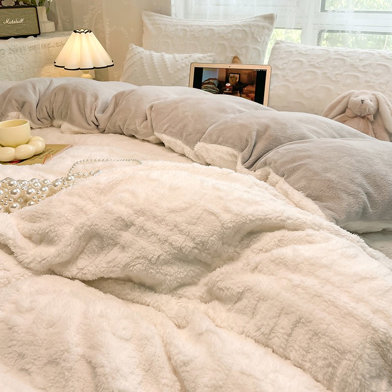 HL原创 2022新款色织提花牛奶绒四件套 提花绒-奶白