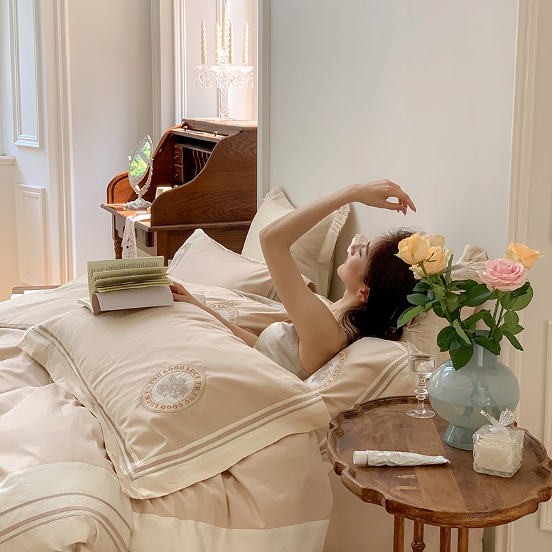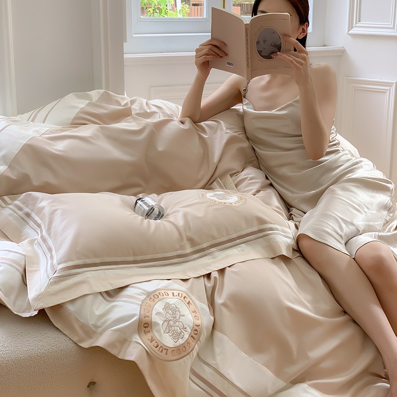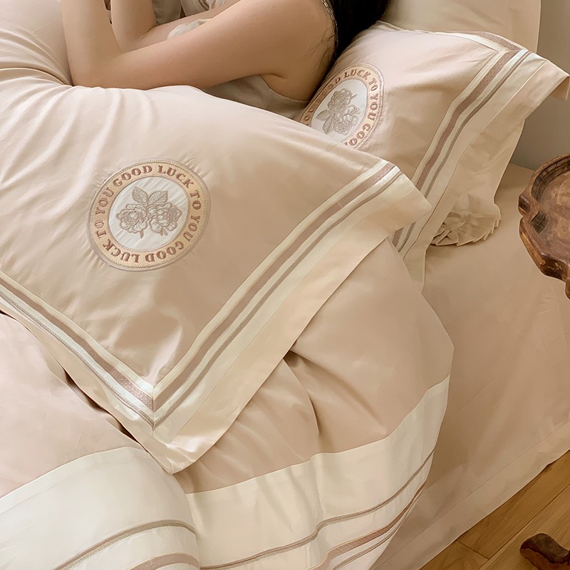 商品名称:馨蕊2022新款秋冬刺绣100支高定系列四件套-山茶花 山茶花-香槟