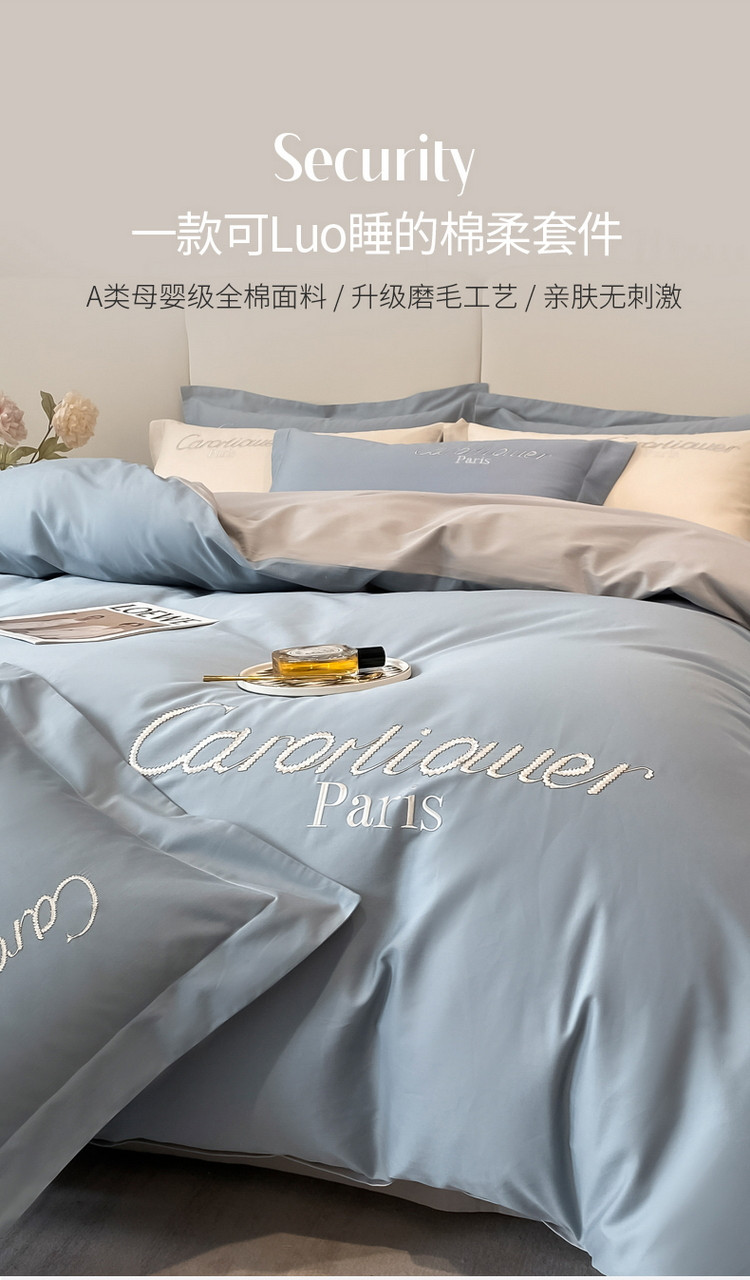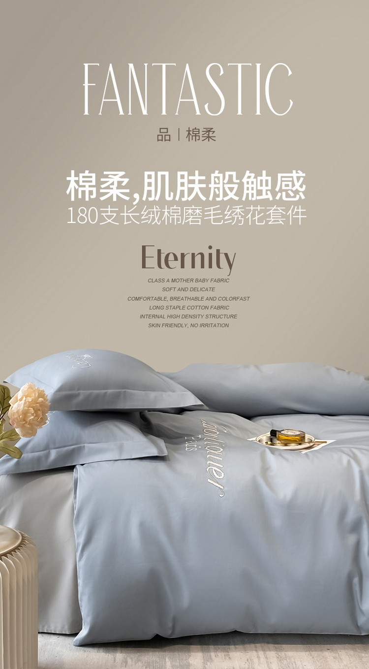 (总)6182023新款100支长绒棉全棉纯棉火山磨毛四件套