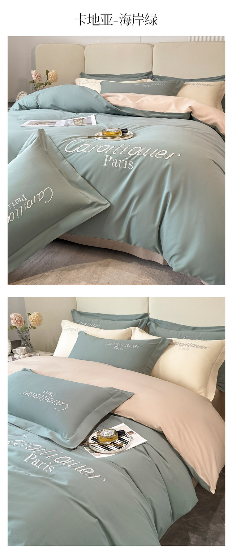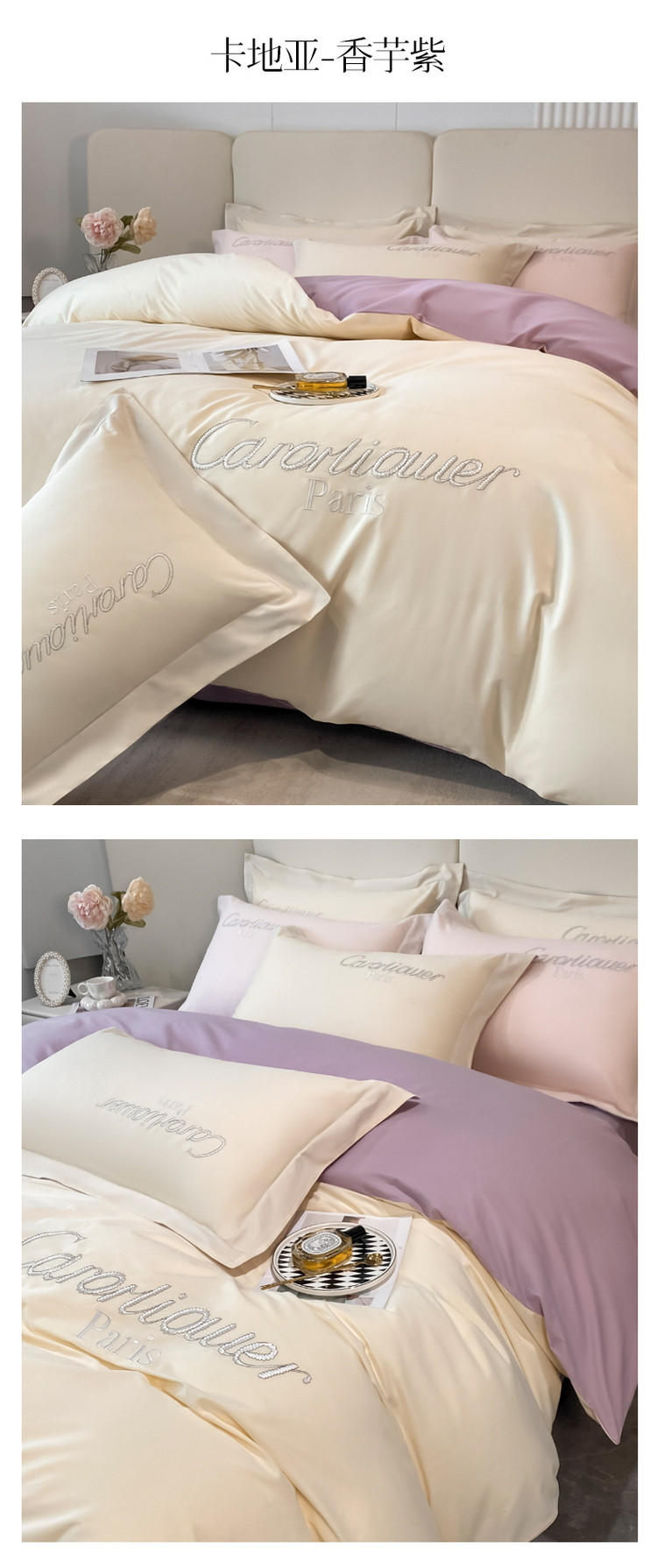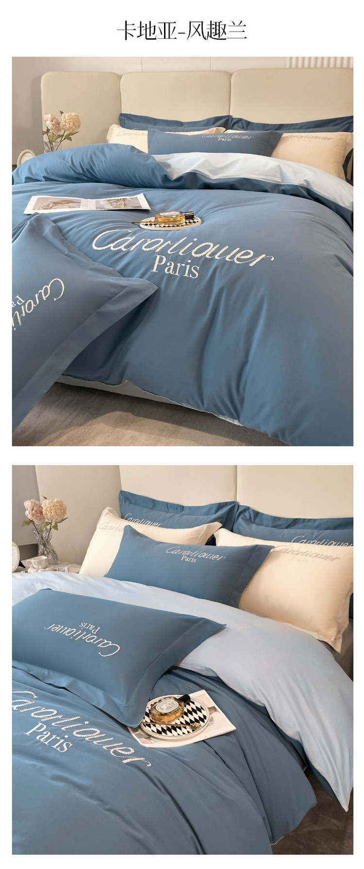 (总)618家纺 2025新款50S100支全棉纯棉磨毛奶糖系列四件套,奶糖-粉,奶糖-蓝