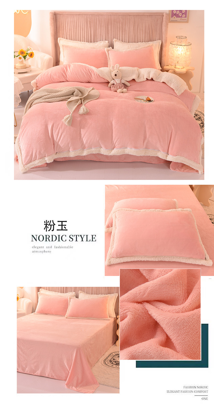 (总)艾米家居 2025秋冬新款浮雕牛奶绒花边四件套,白色,豆沙,粉色