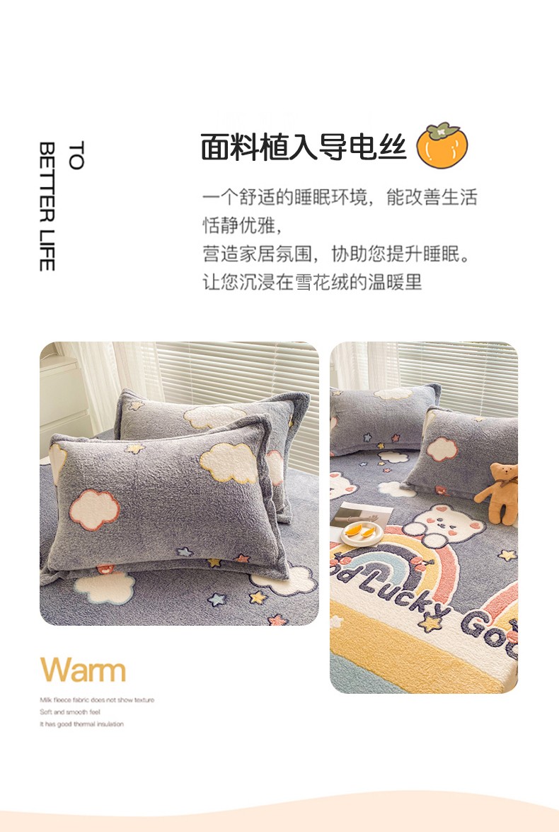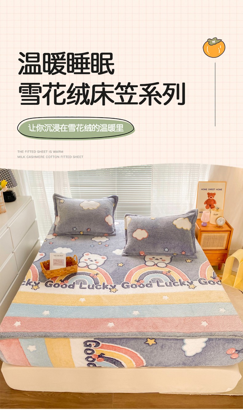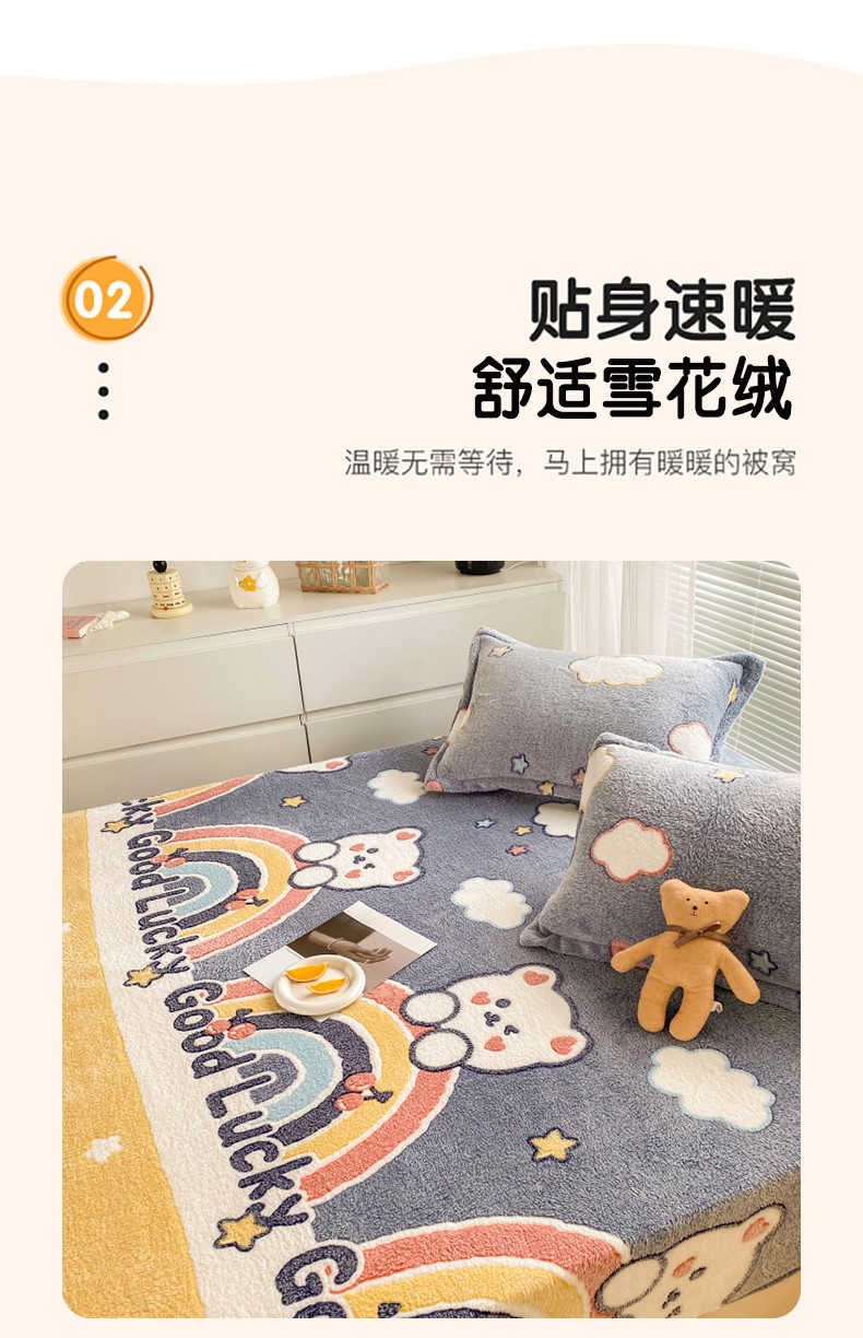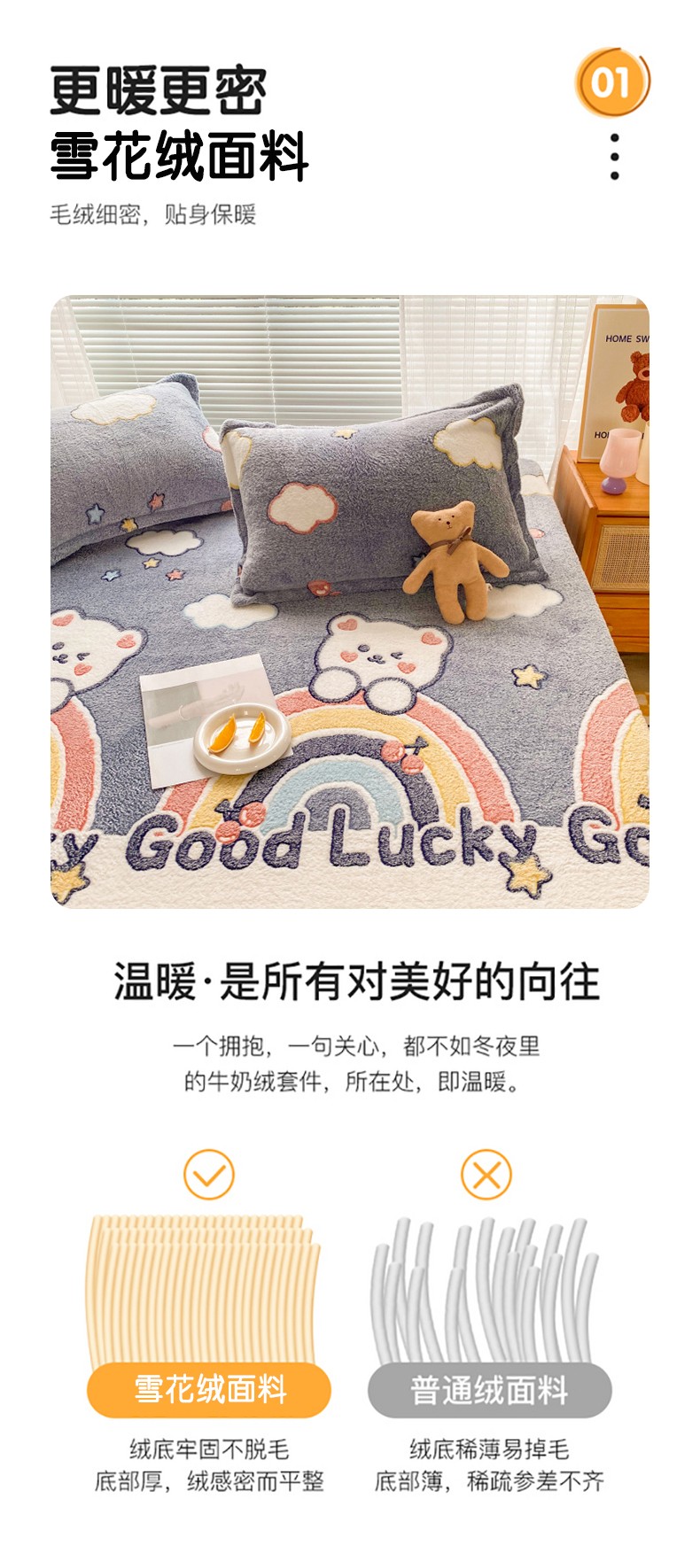 商品名称:慕尚 2022新款加厚保暖雪花绒床笠 幸运小熊
