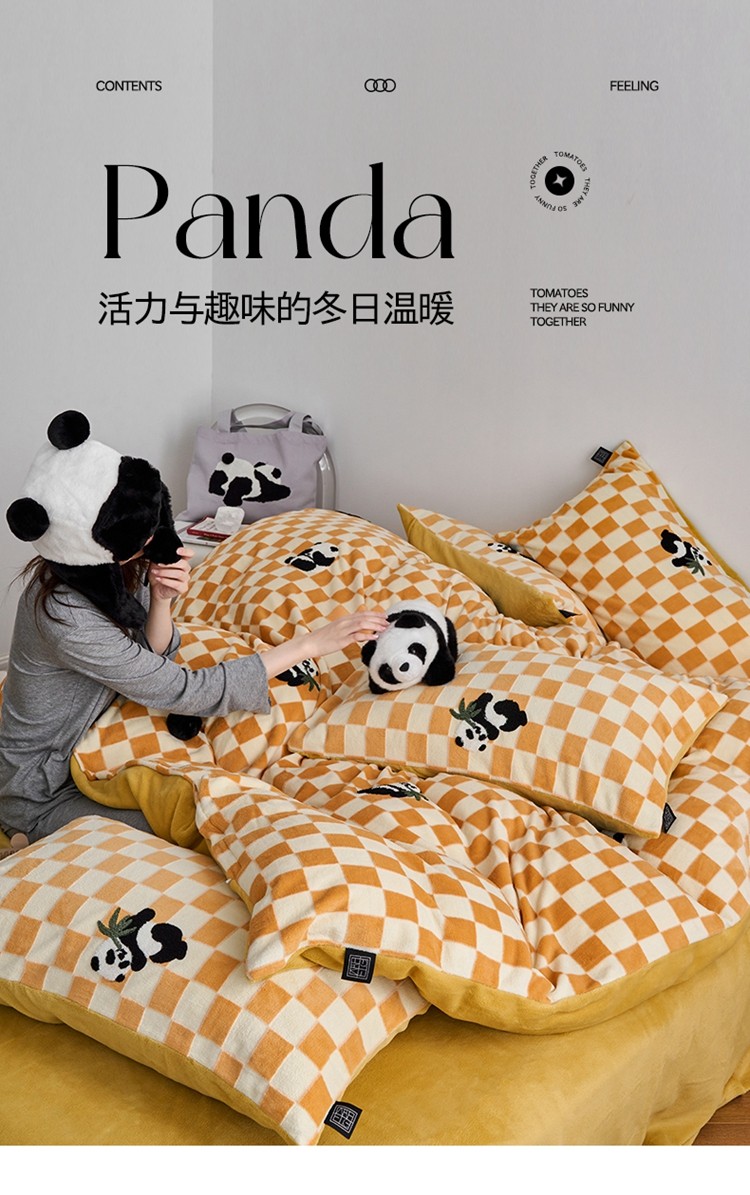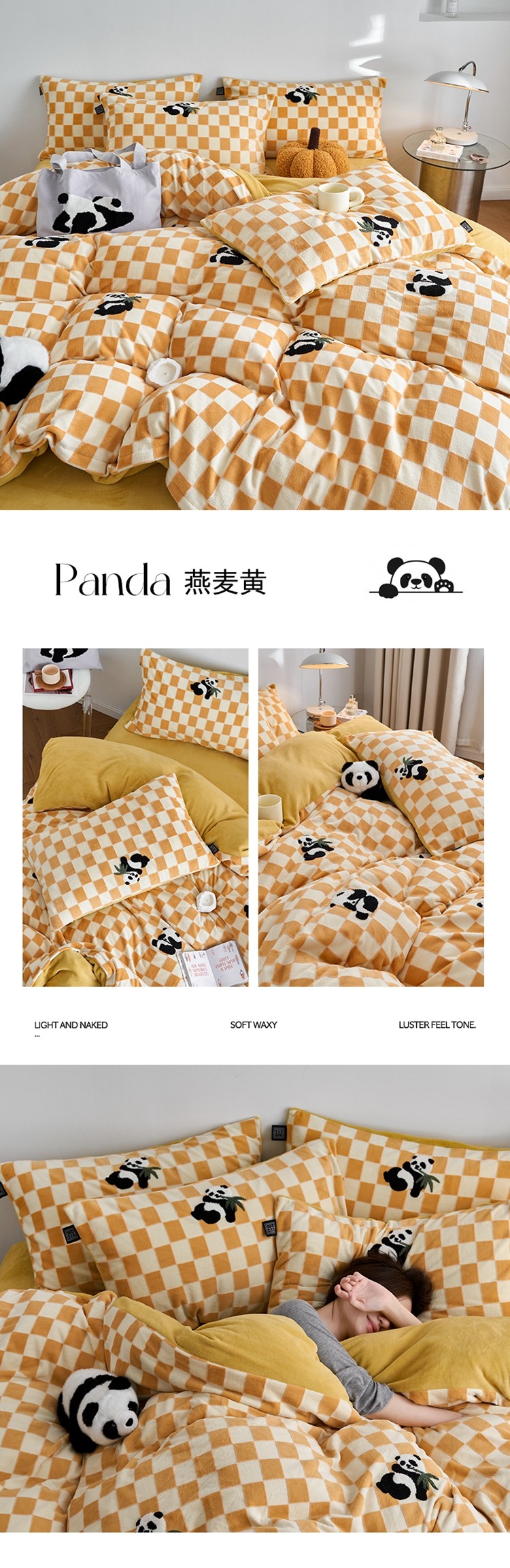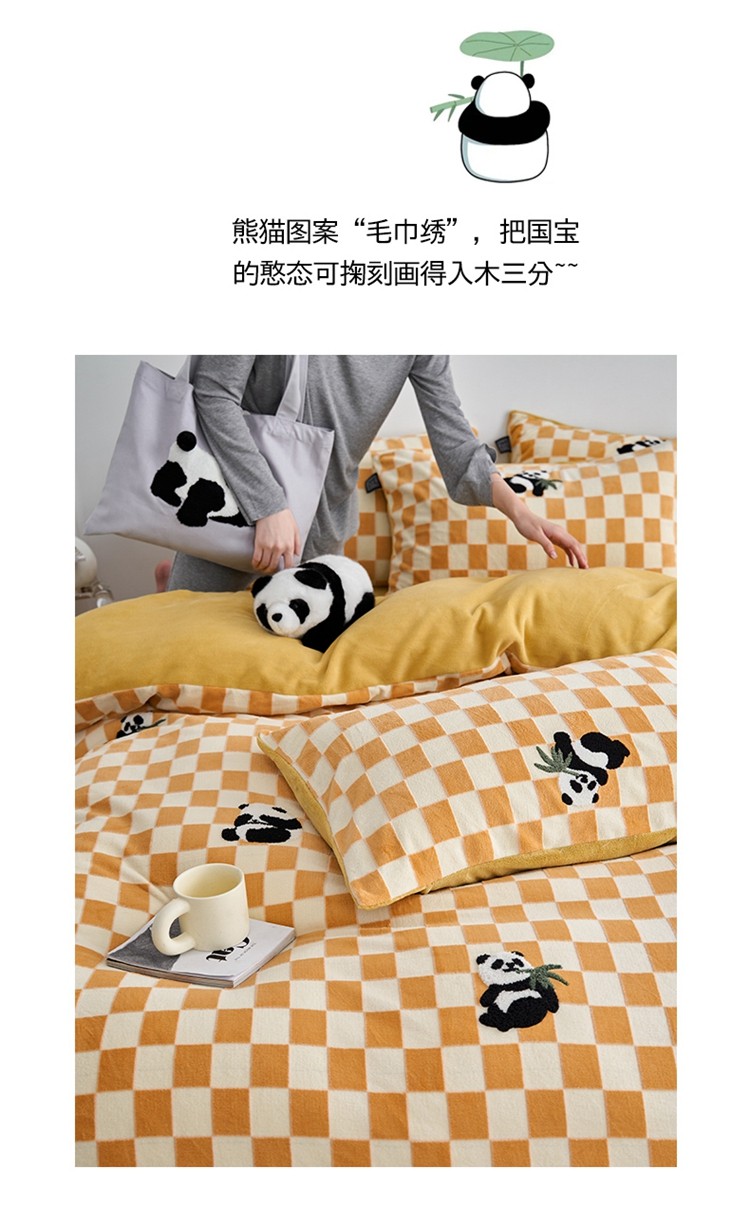 2022锦芙牛奶绒250克全消光绣花四件套,情绪熊猫-白竹